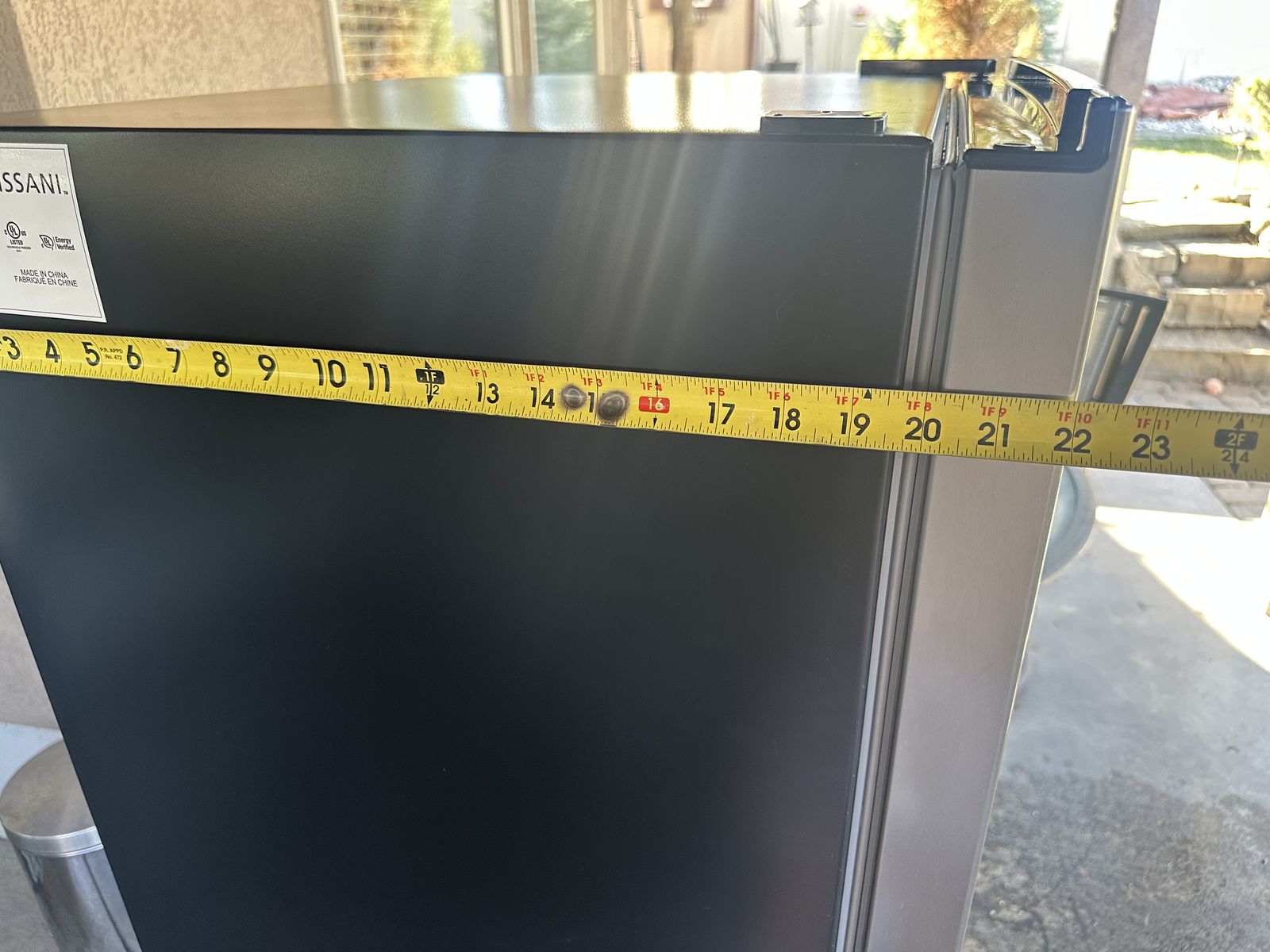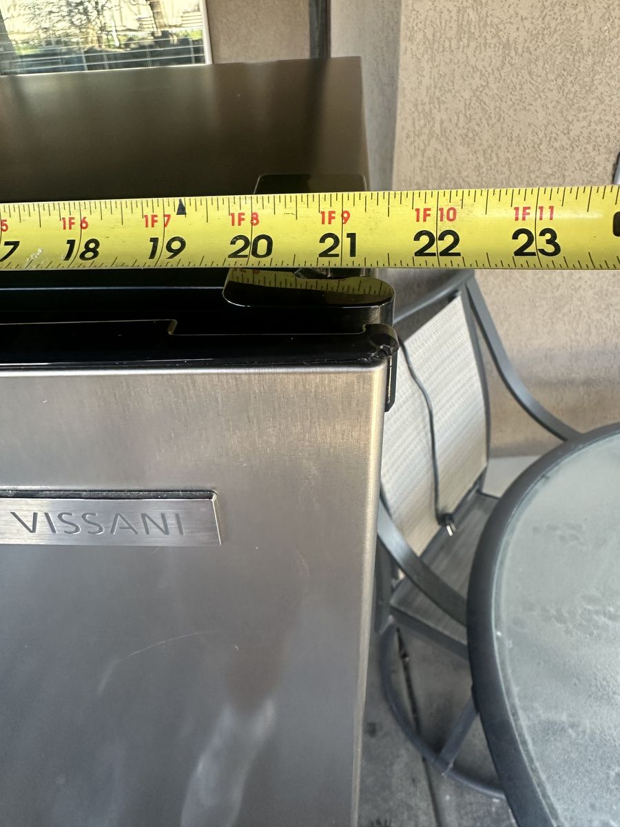 ApplePayBrand is Vissani, See photos for dimensions. Everything works, can be used as a refrigerator or a freezer. Bought a new fridge so it’s just taking up space, thoroughly cleaned, no mold or anything like that. Message for more details if needed!