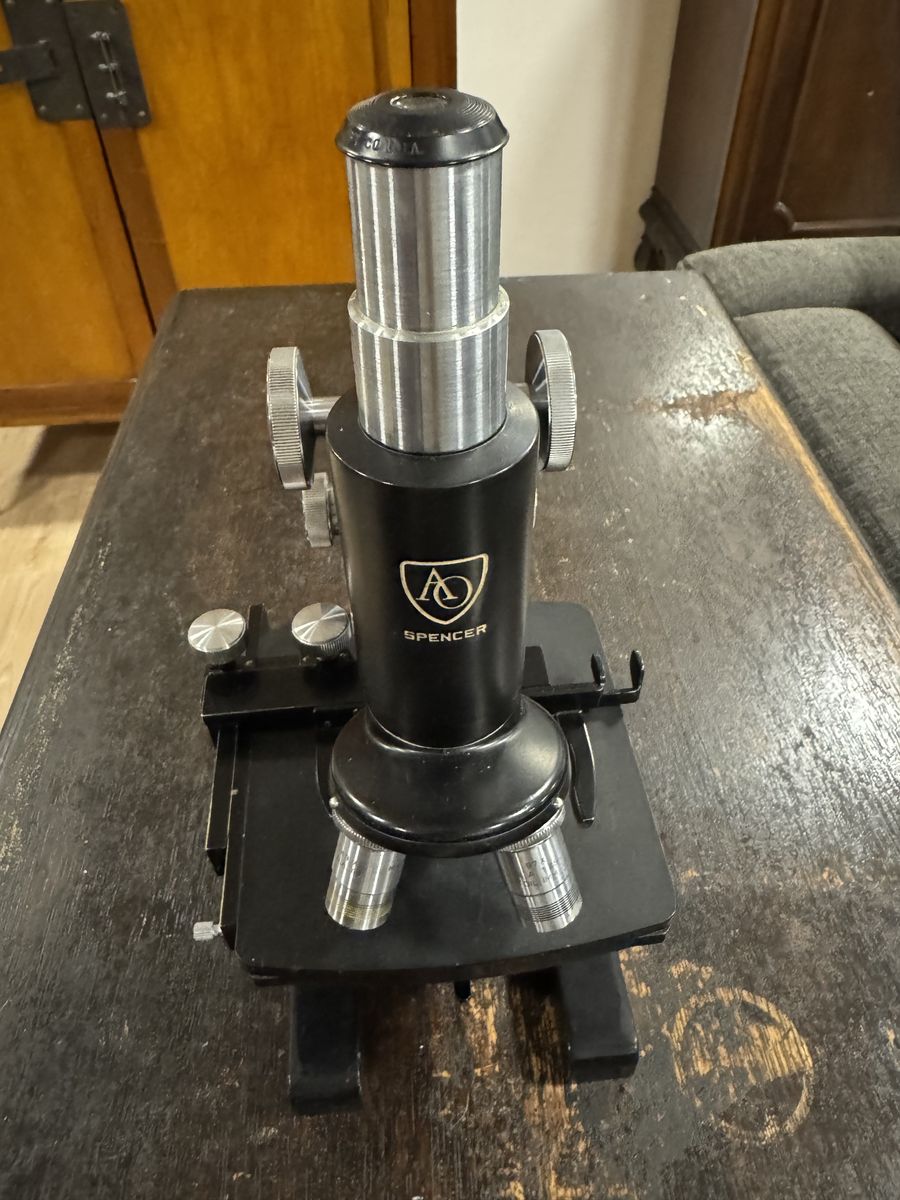 VenmoSpencermonocular microscope, a collectibel scientific instrument made in the USA. Qualifty craftsmanship. Triple nosepiece for multiple objective lenses. Course and fine focus knobs and substage mirror. Comes with case.