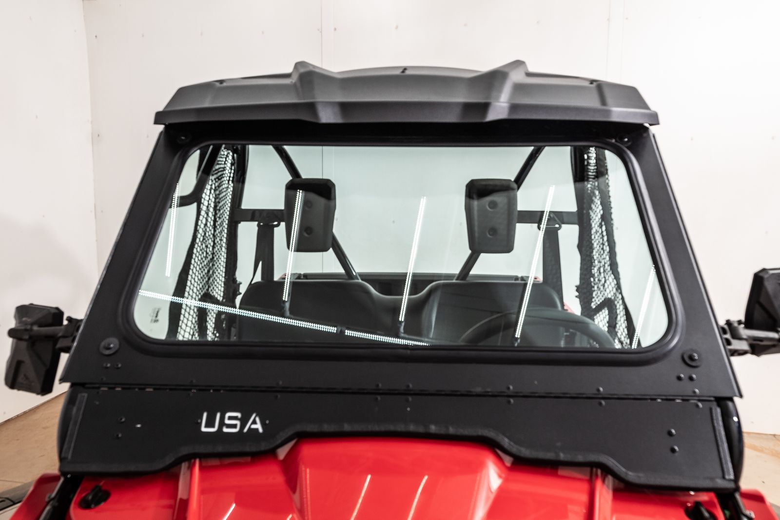 A full Occupant Protection Structure with large-diameter tubing surrounds the cabin, complemented by hard doors, side nets, and automotive-style three-point seat belts with an Emergency Locking Retractor. Integrated handholds and recessed tubing help keep you secure and comfortable on rough terrain.