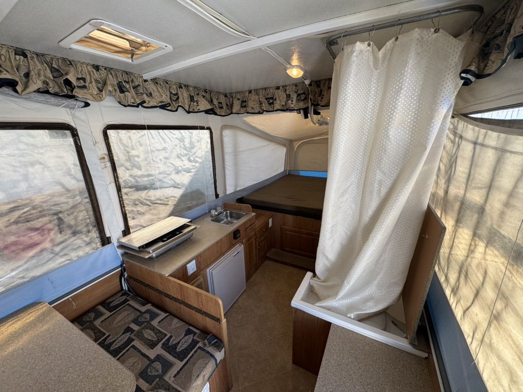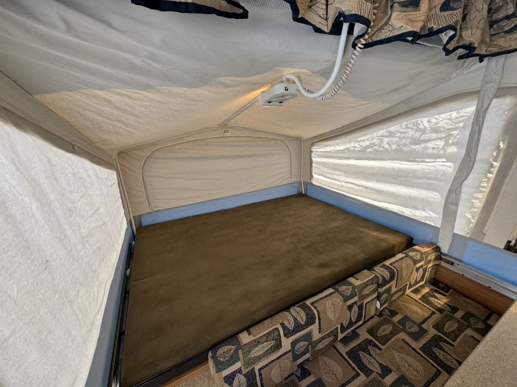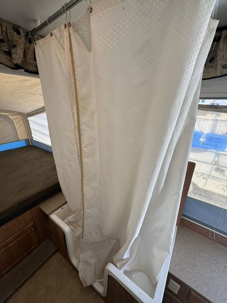 VenmoClean Jayco popup in Great condition Fully loaded model Full bathroom/shower enclosure huge king bed up front. Double bed in rear, Plus a table that folds to a twin bed Outside shower/inside shower Tons of storage - huge durable storage box up front for gear that is in perfect condition with secure latches Diamond plate front and rear to protect the body from damage/rock chips or randomly hitting things while towing canvas and screens are in amazing condition No pets or smoking All curtains on excellent shape Roof is in perfect like new condition it has never leaked and the storage box is in outstanding shape 19k btu Thermostat controlled heater. 3 way fridge works great Co2 detectors Bunk overhead lights/fans Comes loaded with camping supplies water hoses Two 5g propane tank Shower enclosure can be taken down when not in use and hidden away Tires and spare are in excellent condition Electric brakes Bearing buddies on the axles for quick servicing- no need to pack bearings! You cannot beat the overall condition, quality build and room of a well taken care of Jayco model. The crank is smooth and effortless and the beds slide in like butter Jayco has always built popups that easily go 30+ years with heavy use with even poor maintenance. This is in great shape for its age Pre wired to add AC in seconds. can be added so easily in front storage access