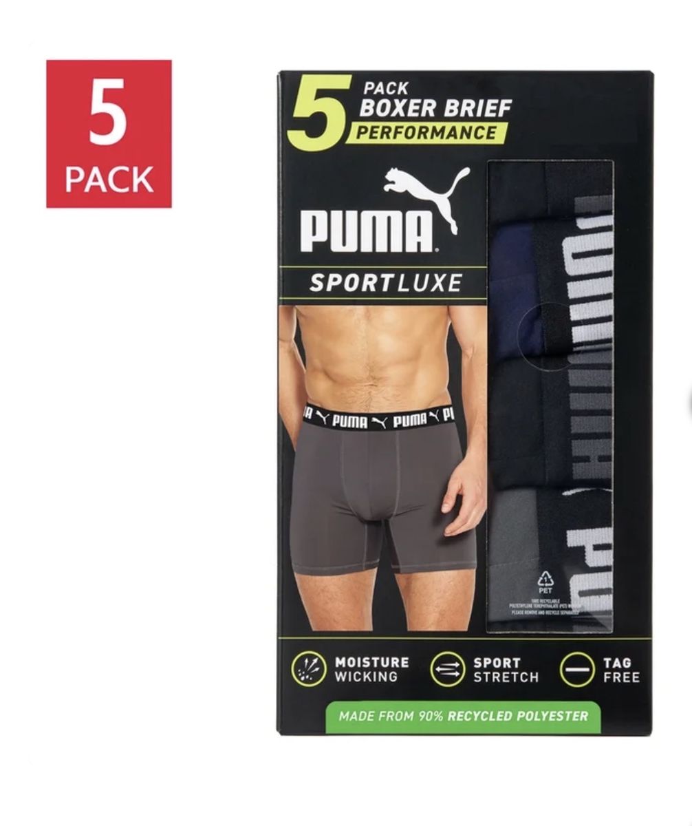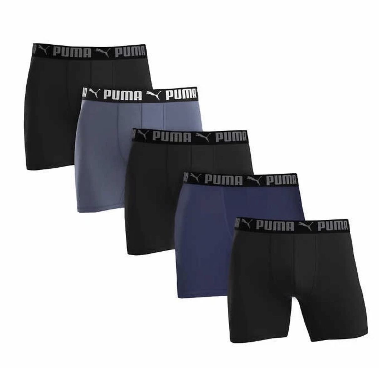 PUMA Sportluxe Men's Boxer Briefs 5-Pack Moisture Wicking Black Gray Navy I have these sizes S, M, L and XL