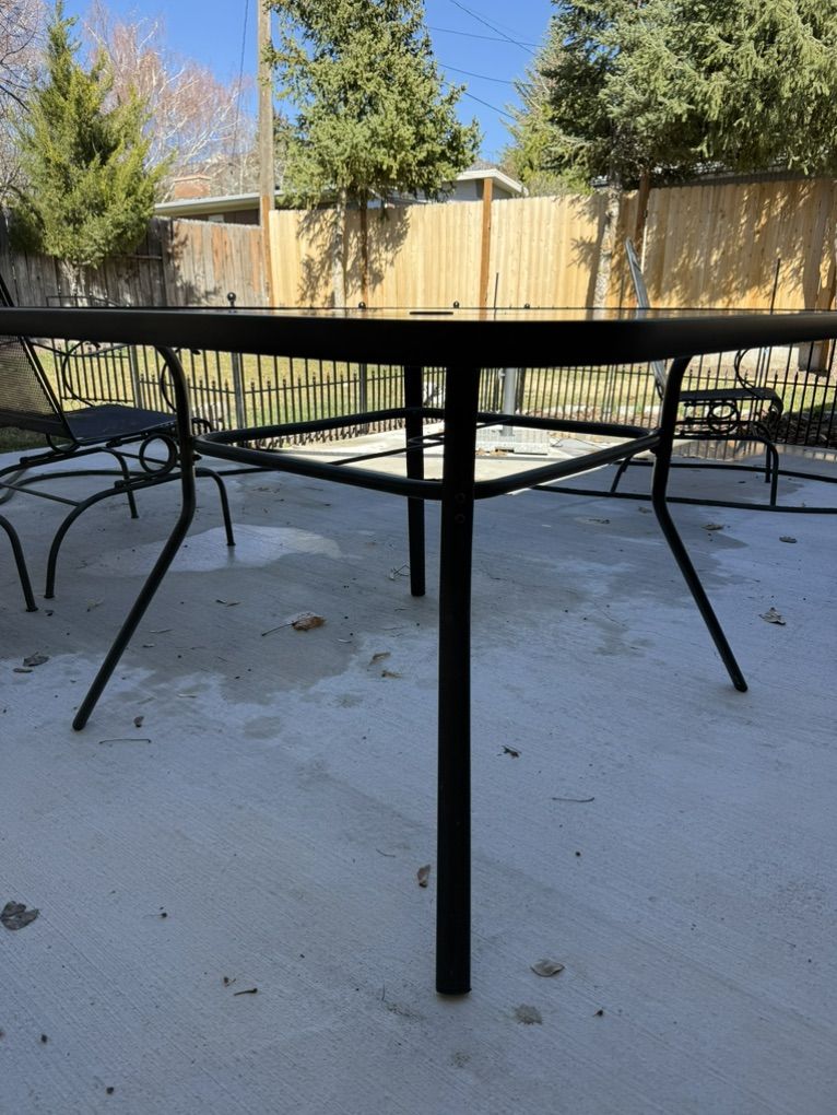 Tempered glass top patio table. 42” square,