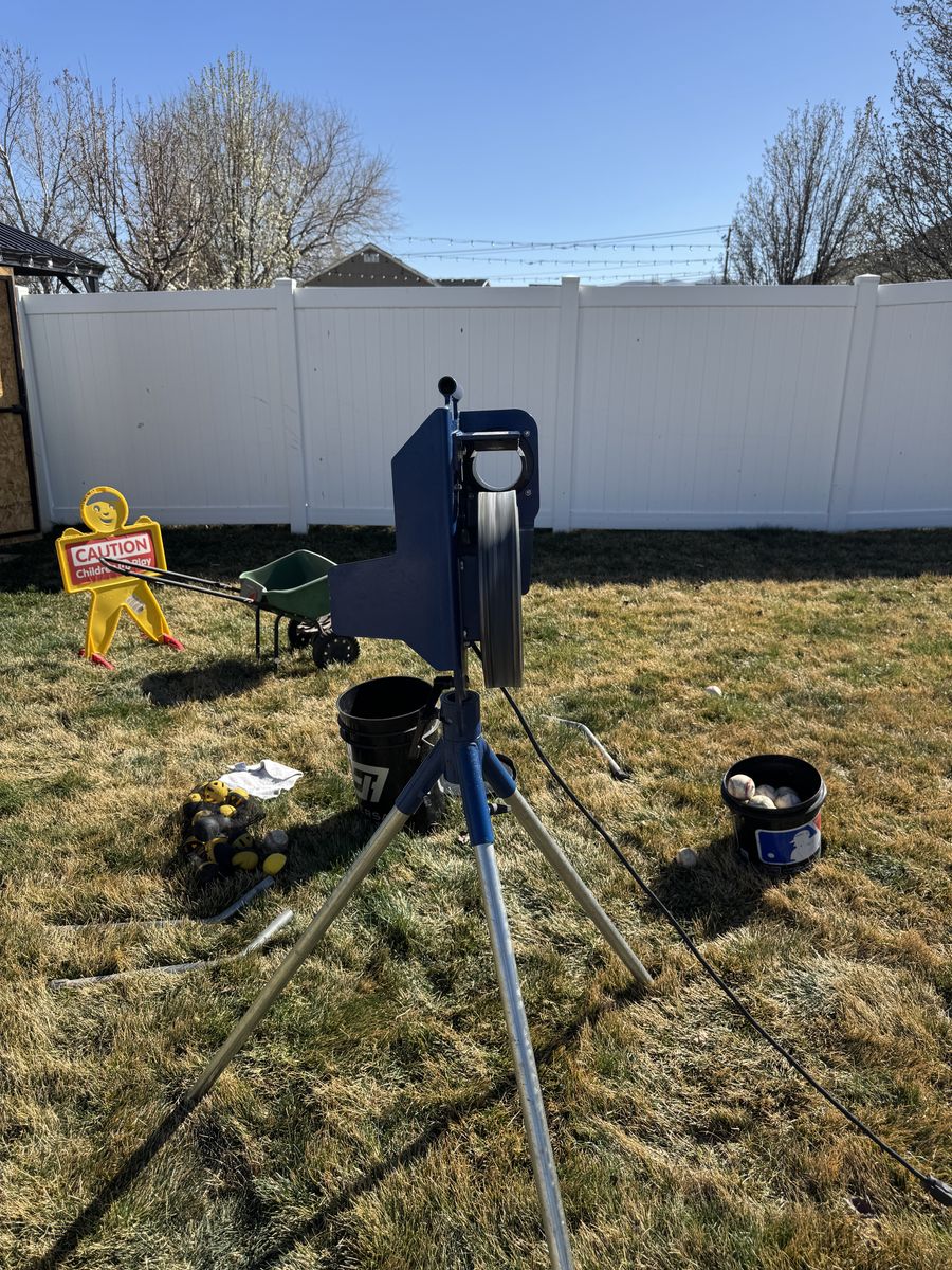 Up for sale is our well‑cared‑for pitching machinethat easily converts from little league baseball to softball. It’s in amazing condition and ready for its next MVP.