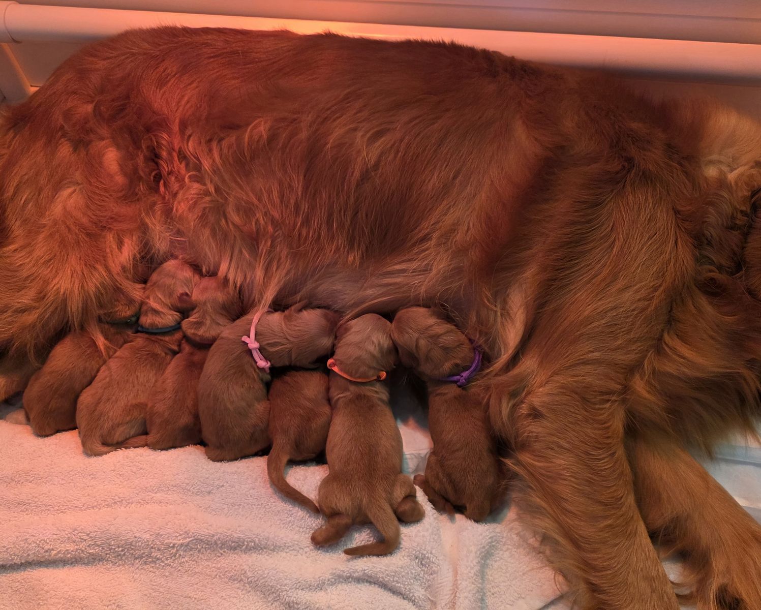 ZellePuppies are here and doing great! There are 4 girls and 3 boys. We are taking deposits to hold your pick of litter. The deposit is $300.00, it will be non refundable unless there is a health problem with the puppy and it does go towards the total purchase price.