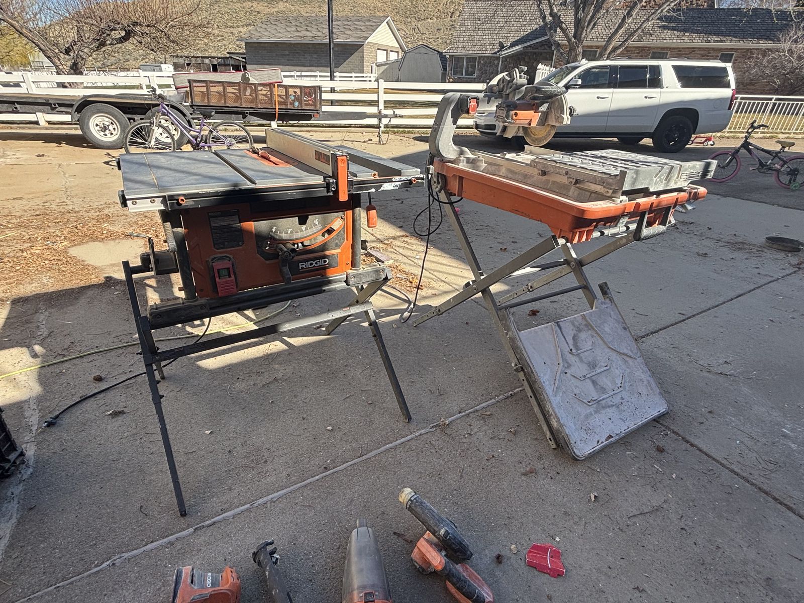 CashAppLarge lot of RIDGID tools. Cordless power tools, multiple pack outs, a table saw with stand, and a tile saw with stand. $1800 OBO
