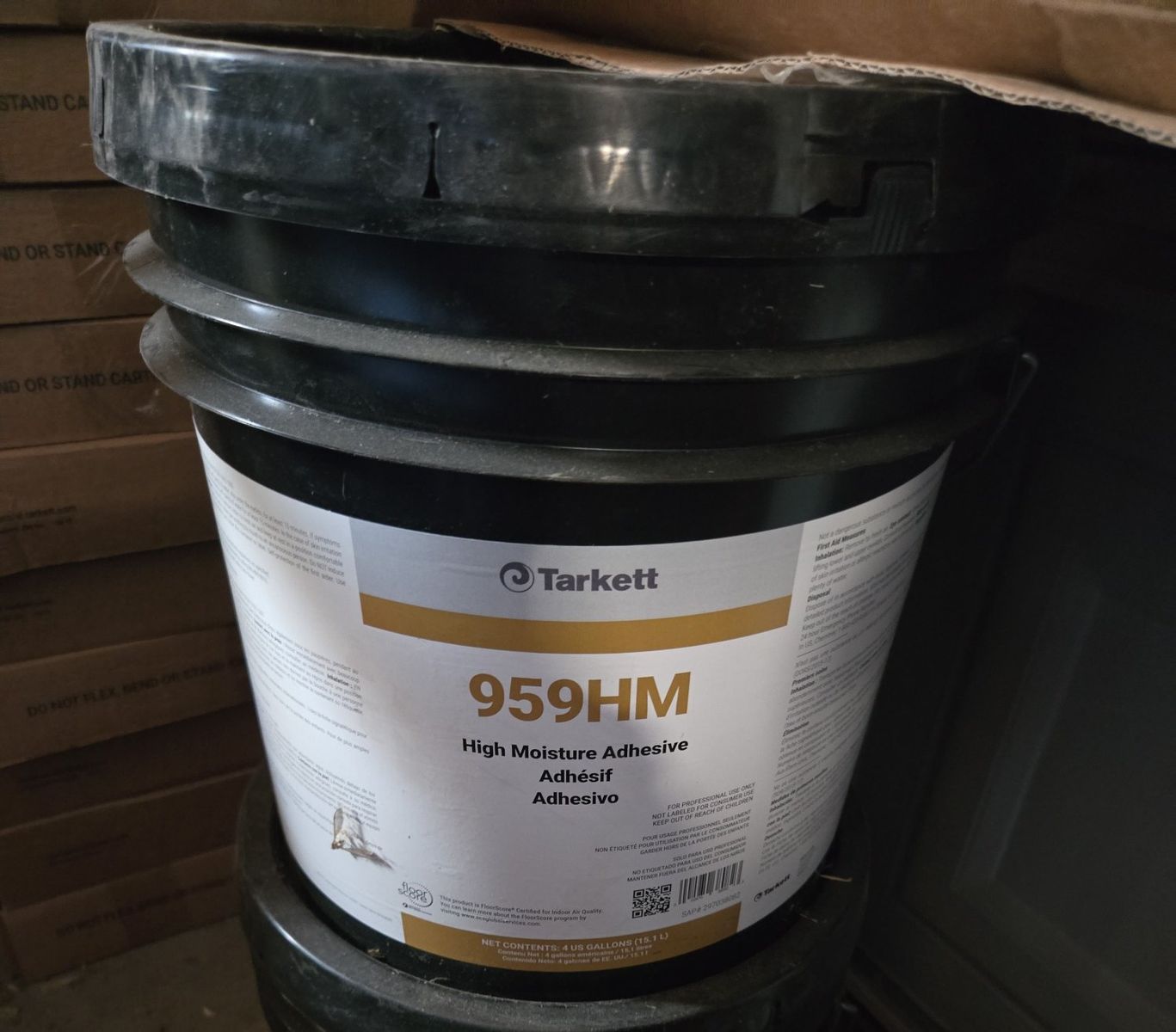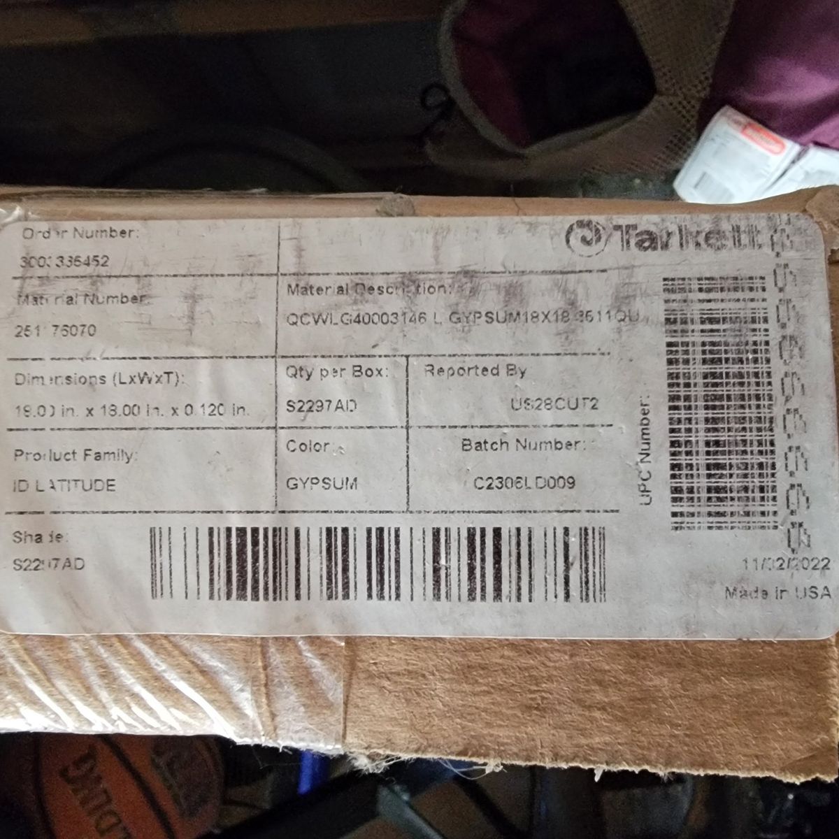 11 boxes- 20pc of Tarkett tile. 1 box has 19 tiles. Glue is dated 2022. $75 per box