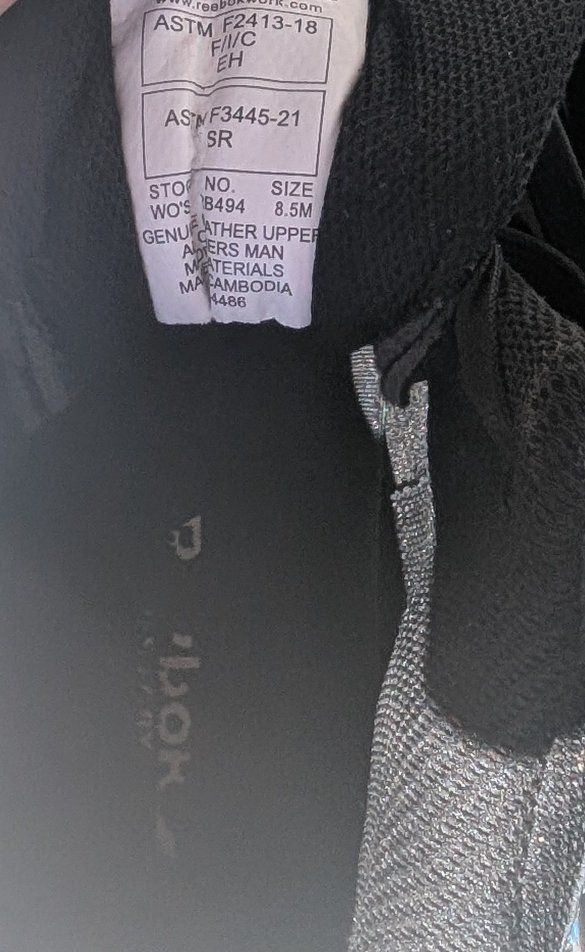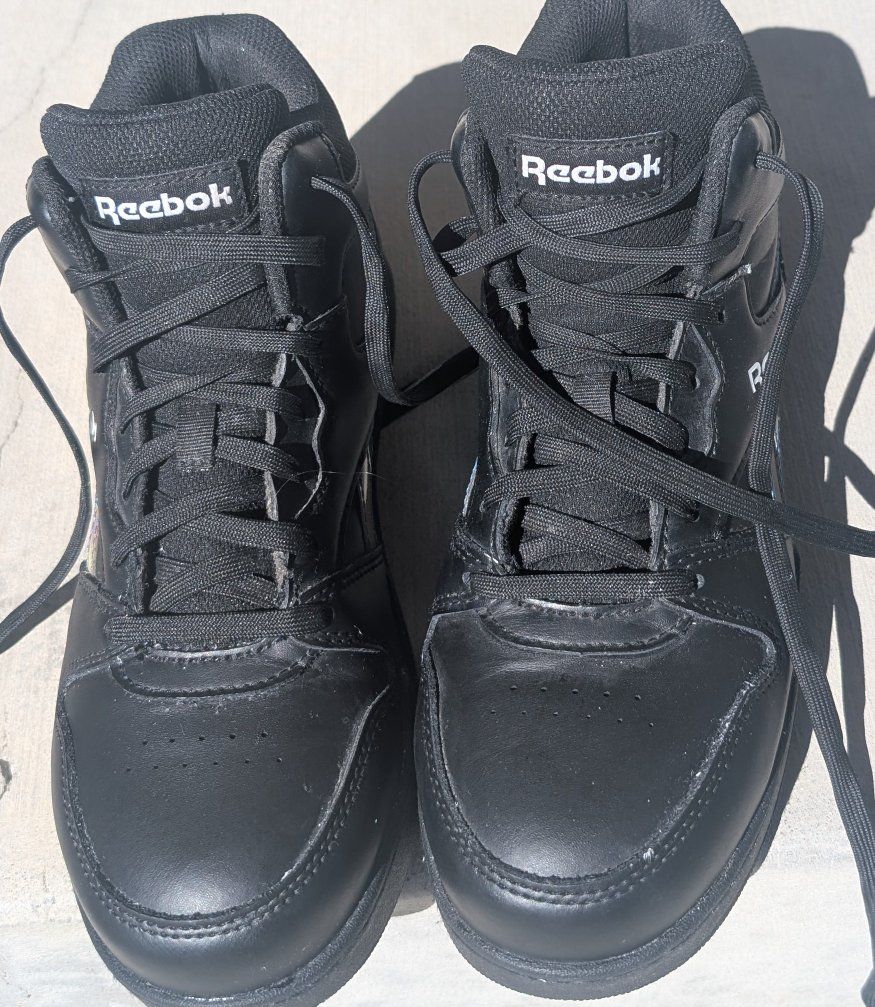 Venmo10 inch, 28 cm length. Black Reeboks with reflective colorful details. Warehouse approved, steel toe. Kind of heavy.