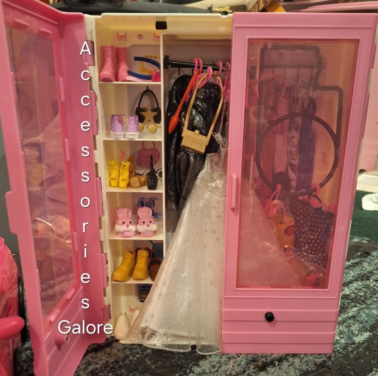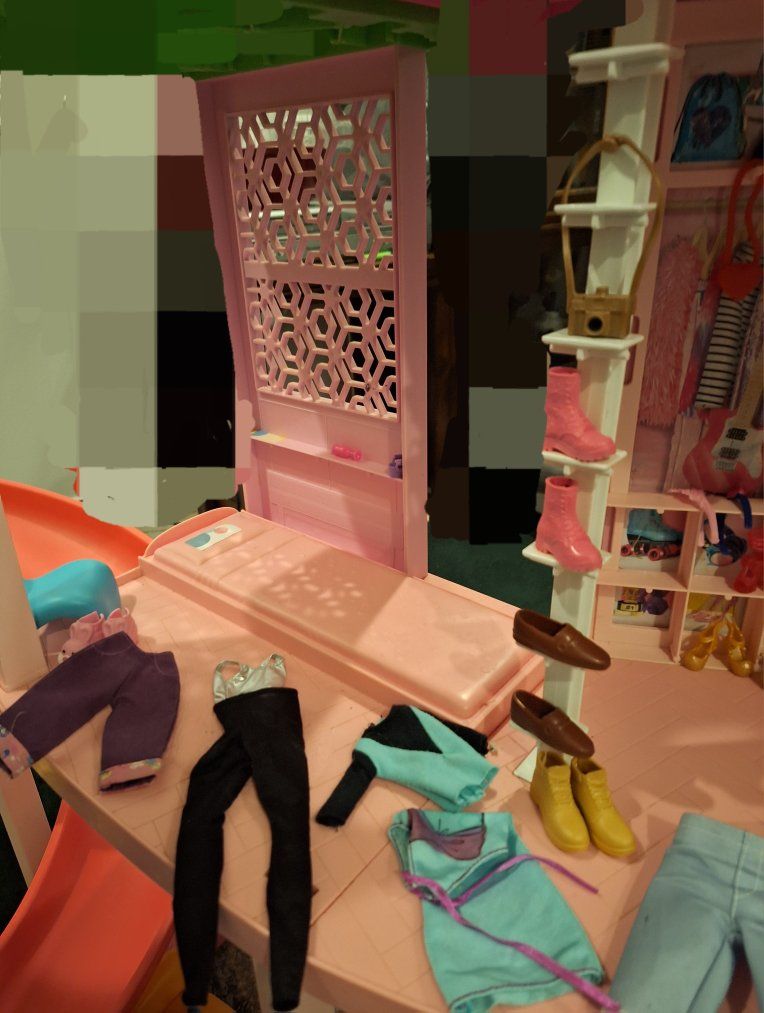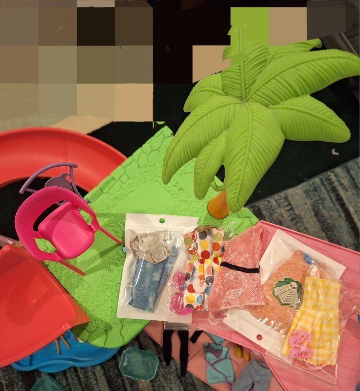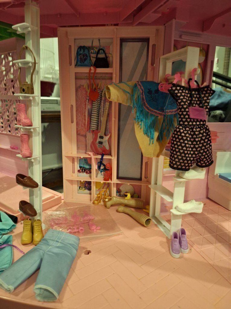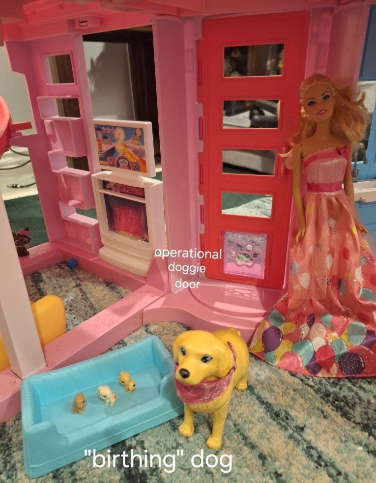 *ALL dolls, accessories and the unit have been sanitized and are ready for play ** **full disclosure: the large slide has a piece that broke along the edge, it does not affect functionality. It has been "repaired" THEN along came pink duct tape to the rescue. It is now fully functional with no worries of any sort of injury to Barbie or the young ones.