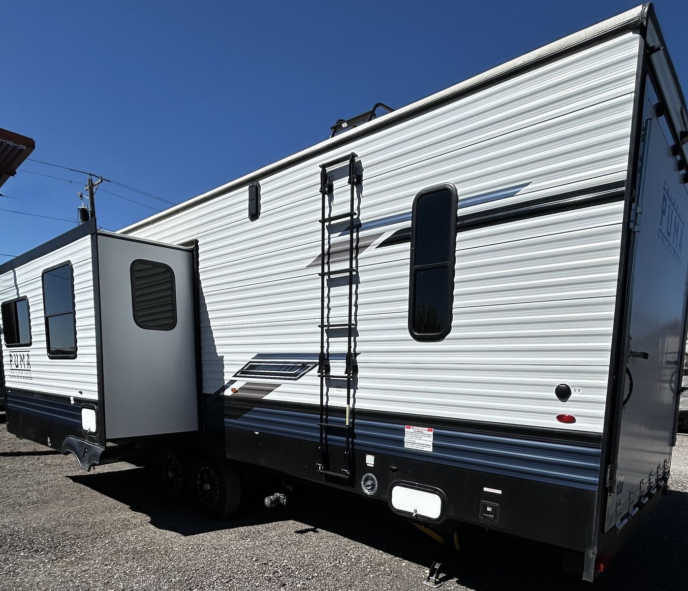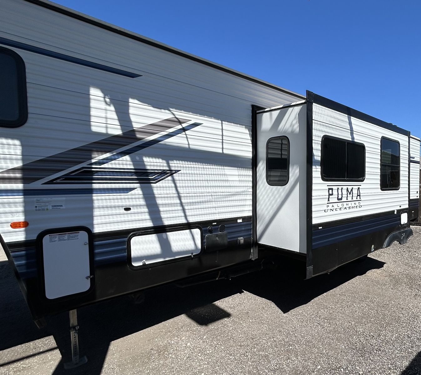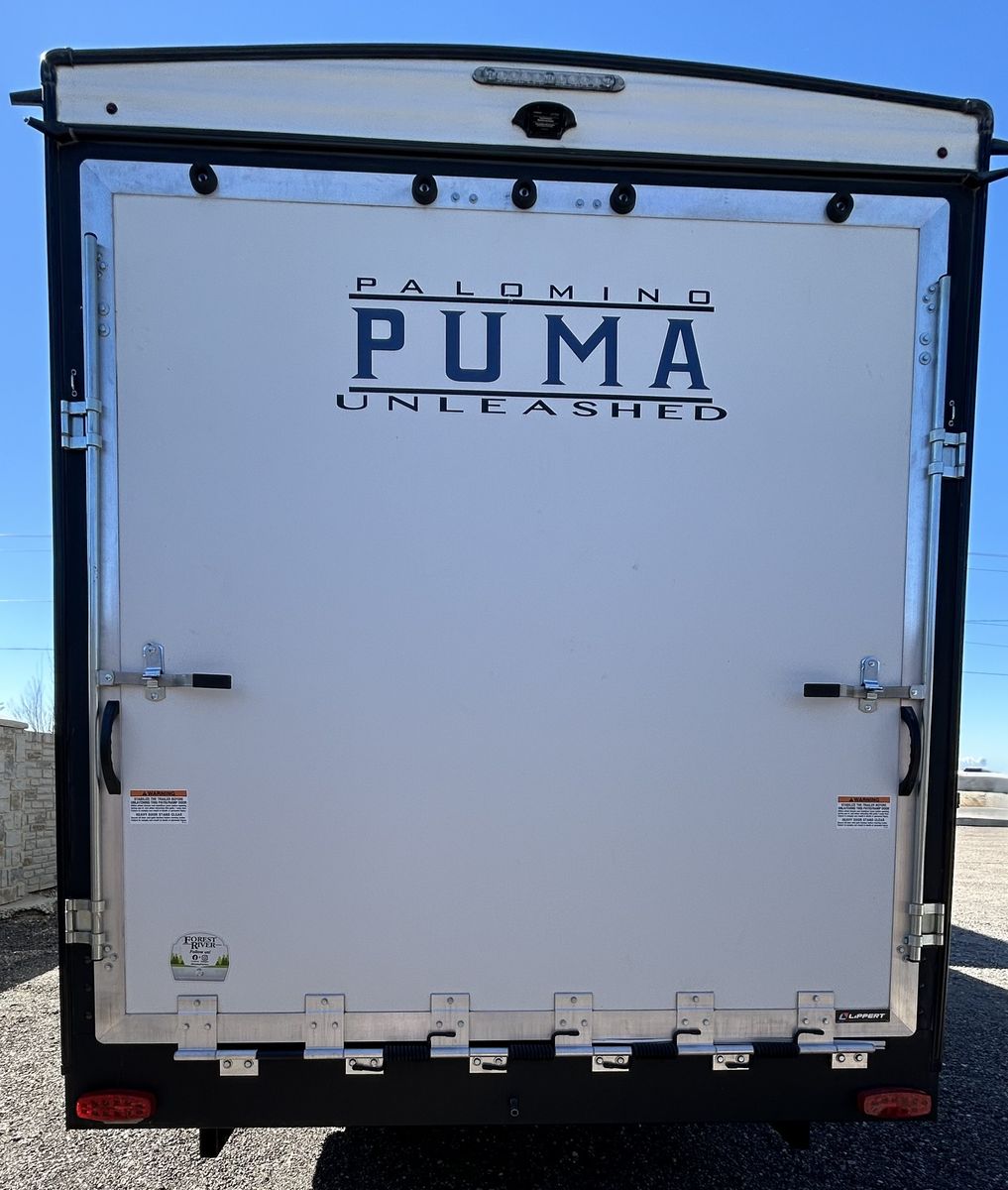 Venmo2024 Palomino Puma 382THS is a 5th-wheel Toy Hauler 38’ with12-foot cargo garage, rear ramp door with patio rails, rear entrance 88" x 88" 4 Seasons Package, sleeps 10, front & rear power jacks, electric awning, front master queen bedroom, one slide-out, an 80" interior height, superlight dry weight only 10,218 lbs, new battery, CLEAN TITLE, Everything Works Properly, lots of storage, Priced to sell quickly. 956-821-2799
