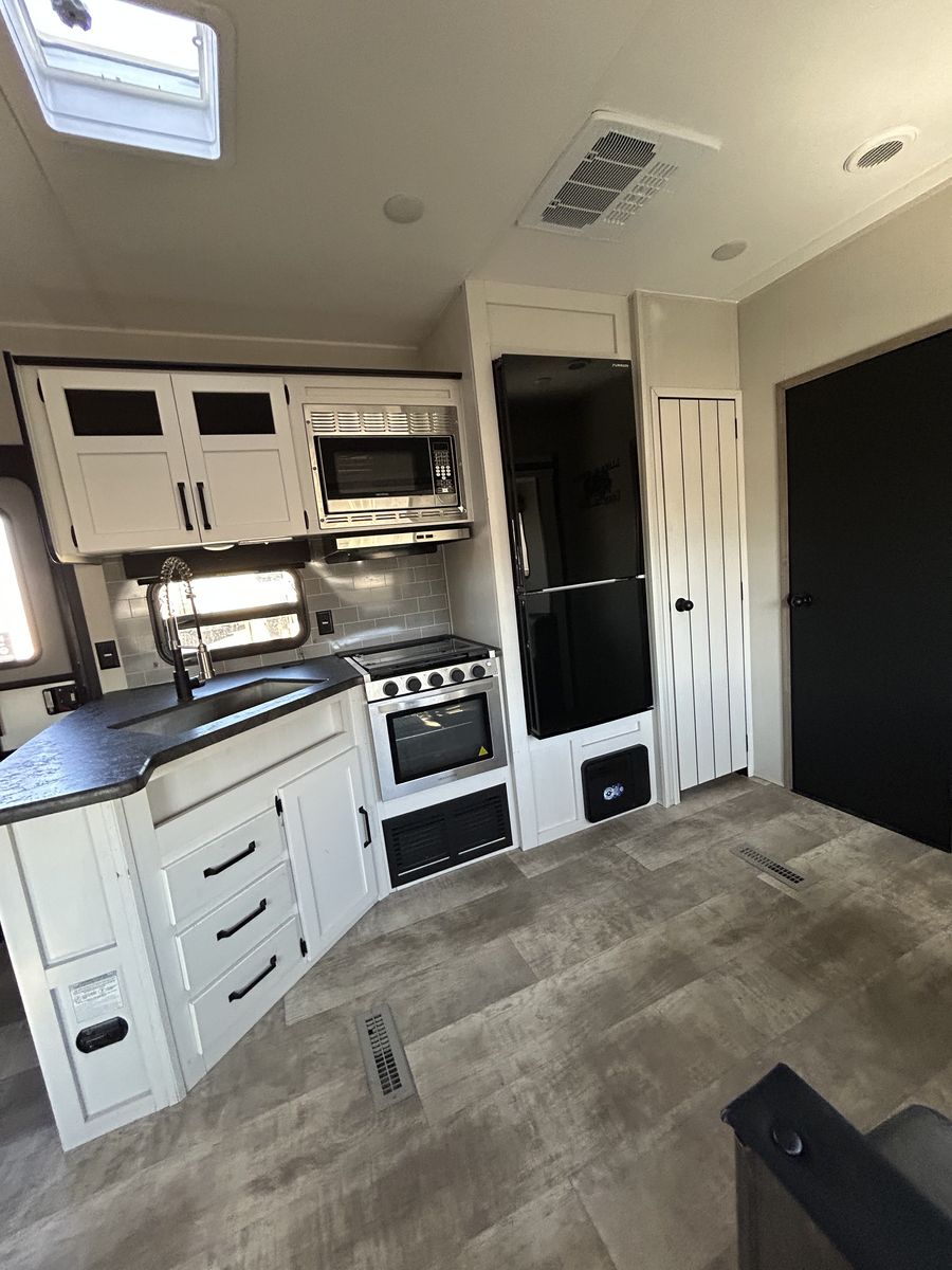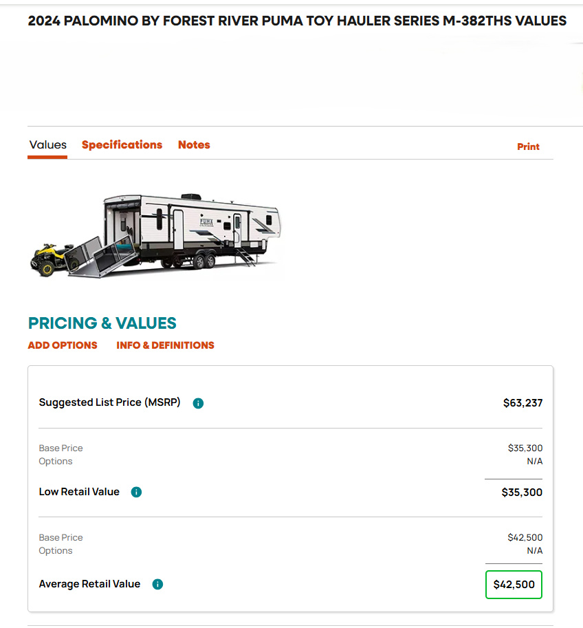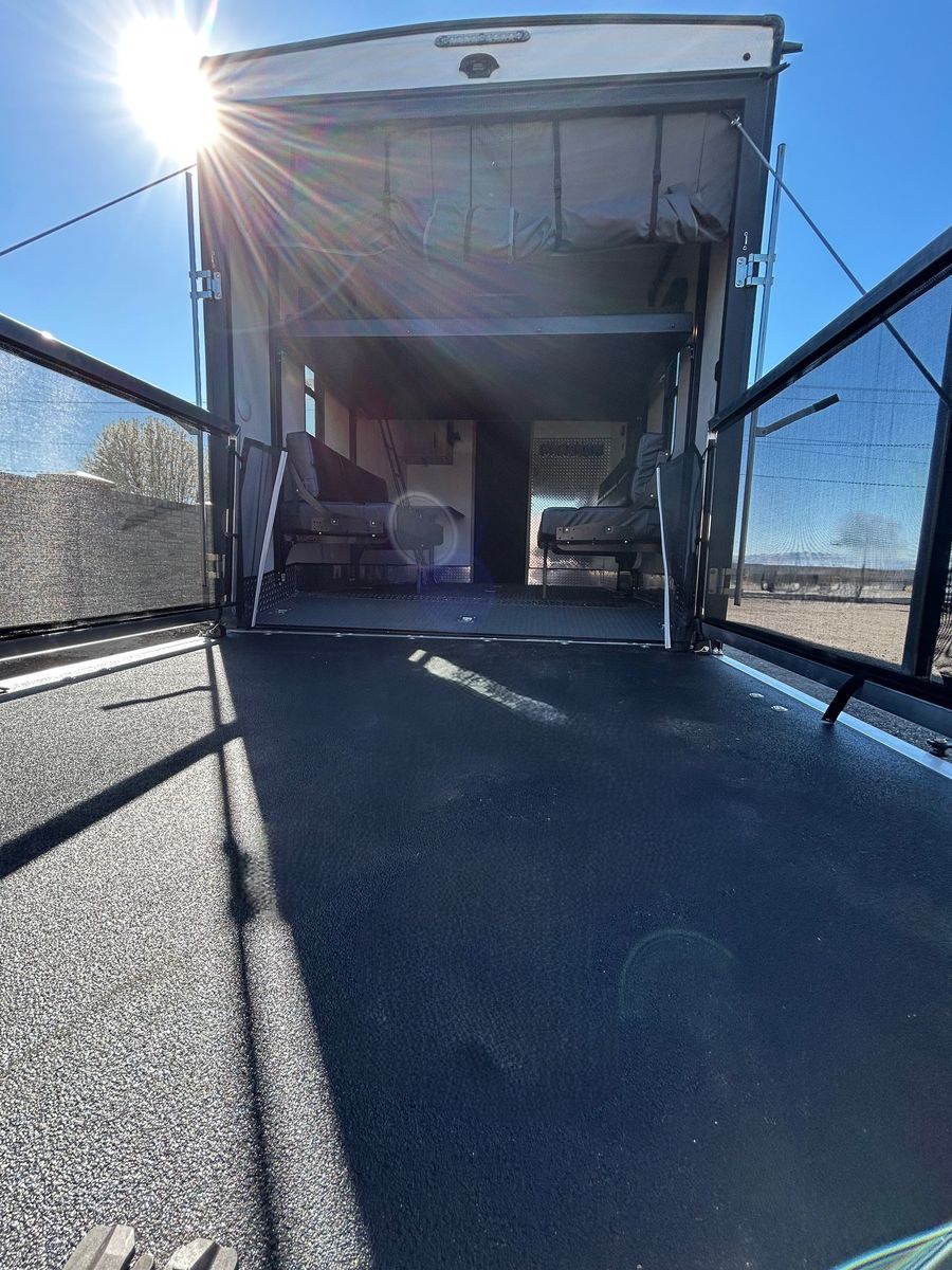 Venmo2024 Palomino Puma 382THS is a 5th-wheel Toy Hauler 38’ with12-foot cargo garage, rear ramp door with patio rails, rear entrance 88" x 88" 4 Seasons Package, sleeps 10, front & rear power jacks, electric awning, front master queen bedroom, one slide-out, an 80" interior height, superlight dry weight only 10,218 lbs, new battery, CLEAN TITLE, Everything Works Properly, lots of storage, Priced to sell quickly. 956-821-2799