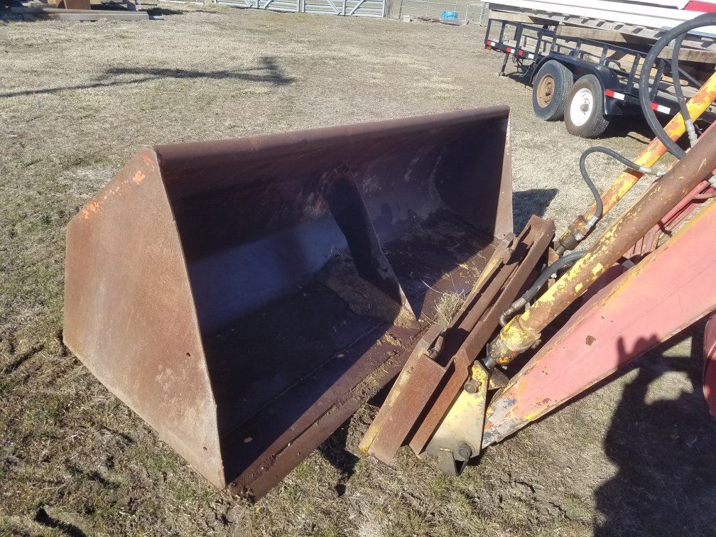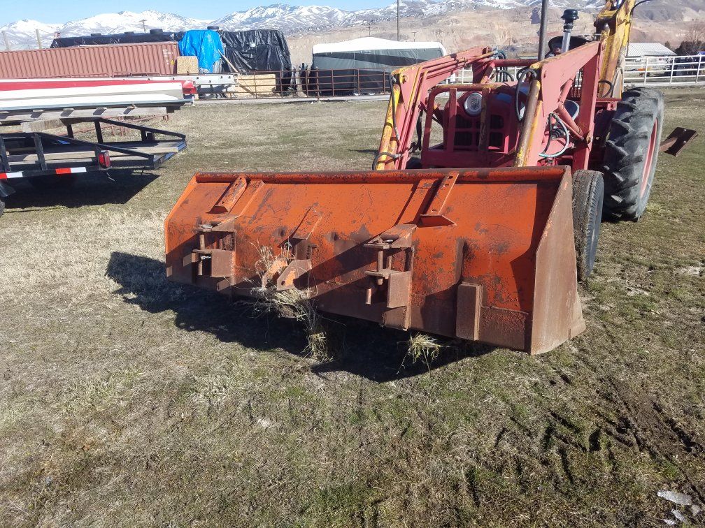 8 foot bucket looks like it might hook to the forks of of a fork lift. it's to big for my ford tractor. it doesn't look like it was used very much asking 100.00 dollars for it