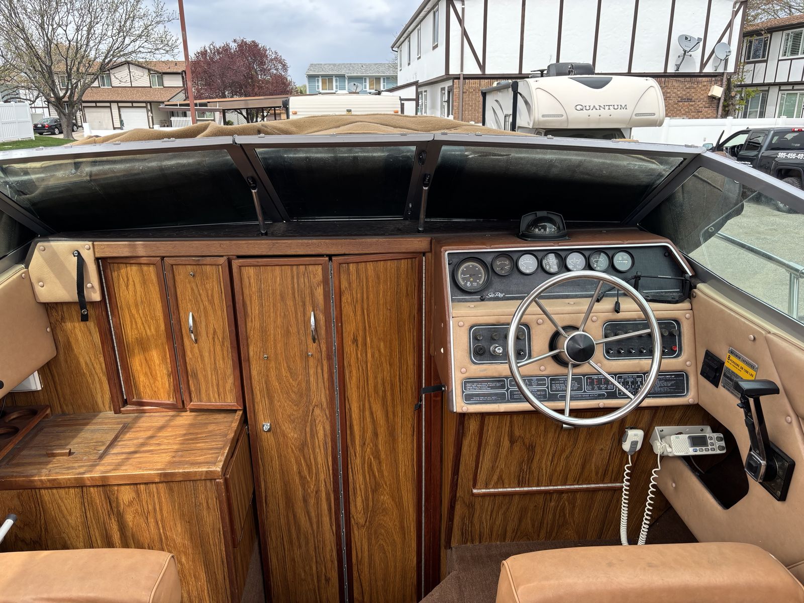 24 ft cuddy cabin life vest depth/ fish finde New motor and some drive parts interior is in good shape shade canopy if you like fishing playing in the rain got a full canopy that covers the whole inside of boat only about 4 or 5 hours on new motor