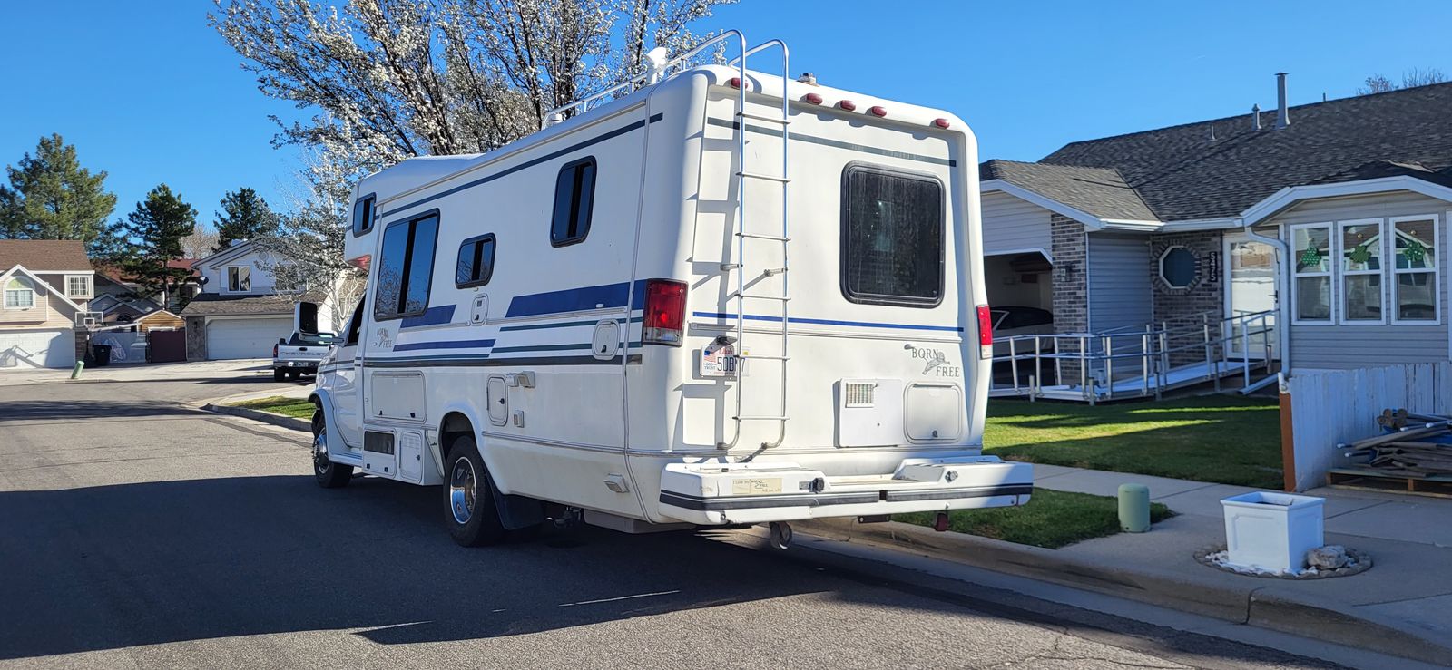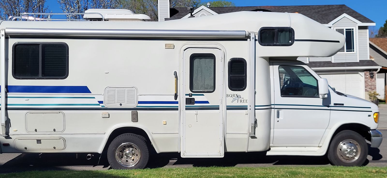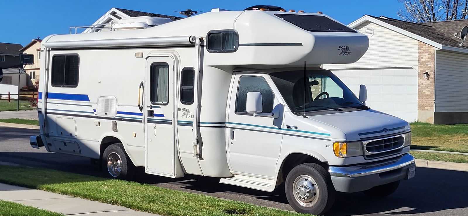Born Free Model 24 RSB. 25 ft long bumper to bumper. This Class C Motorhome can be parked just about anywhere. The Ford E350 chassis is a 1998 model. The factory fiberglass Born Free Motorcoach body was installed on the chassis in 1999.