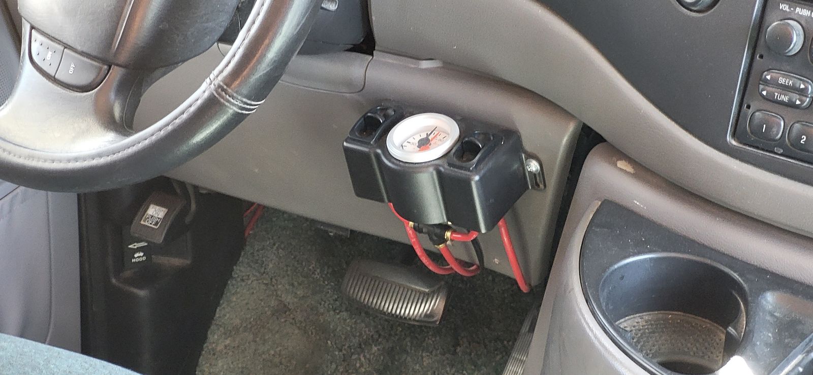 We upgraded the rear leaf springs and front coil springs to E-450. We upgraded the complete air bag system, including an on-board air compressor with dash mounted air gauge and incorporated individual air bag finger-tip pressure controls.