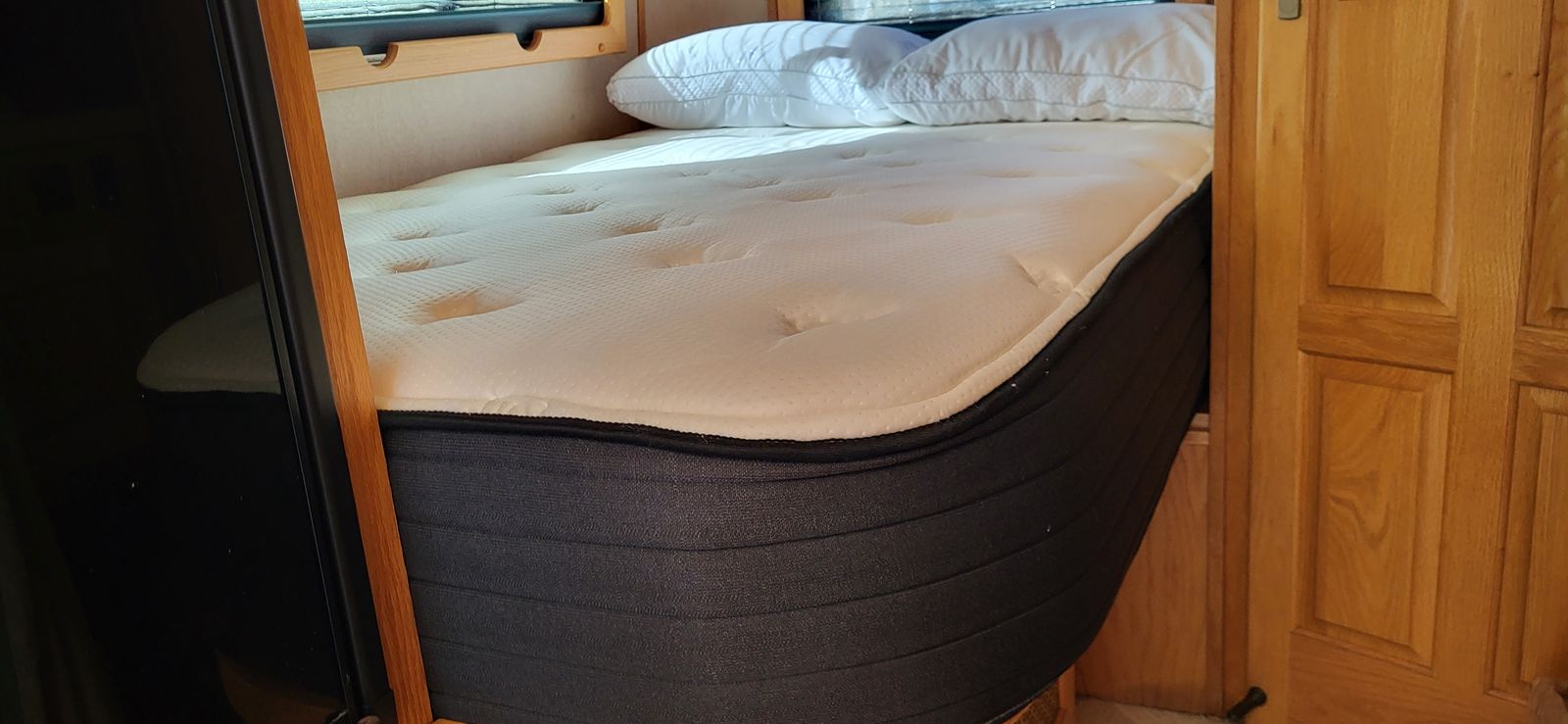We upgraded to a custom $900+ Wilderness Hybrid innerspring 12" thick mattress, then and set out on our first journey. We headed to Montana from our home in Utah with the wind just a-howling. We didn't enjoy the drive in those heavy crosswinds.