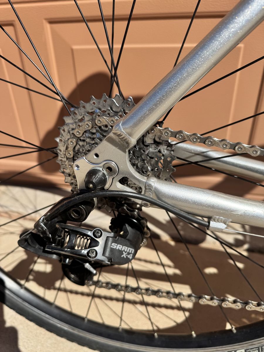 I am selling this bike because of knee surgery. I went to an electric bike. I had the bike tuned up on 09/21/2022 by Bike Fix in St. George. The chain was replaced, lights were installed, and new tubes with sealant were added. I have the receipt. Hopefully, you can get information from the bike pictures. Please email me with any questions. Thanks !