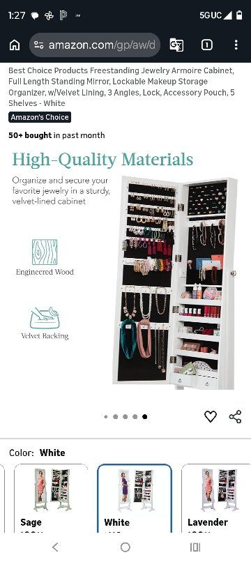 VenmoBest Choice Products Freestanding Jewelry Armoire Cabinet - White. 58H x 16.25W. We bought this cabinet for our daughter and the mirror came broken. You could just use the jewelry cabinet, or replace the mirror. $30