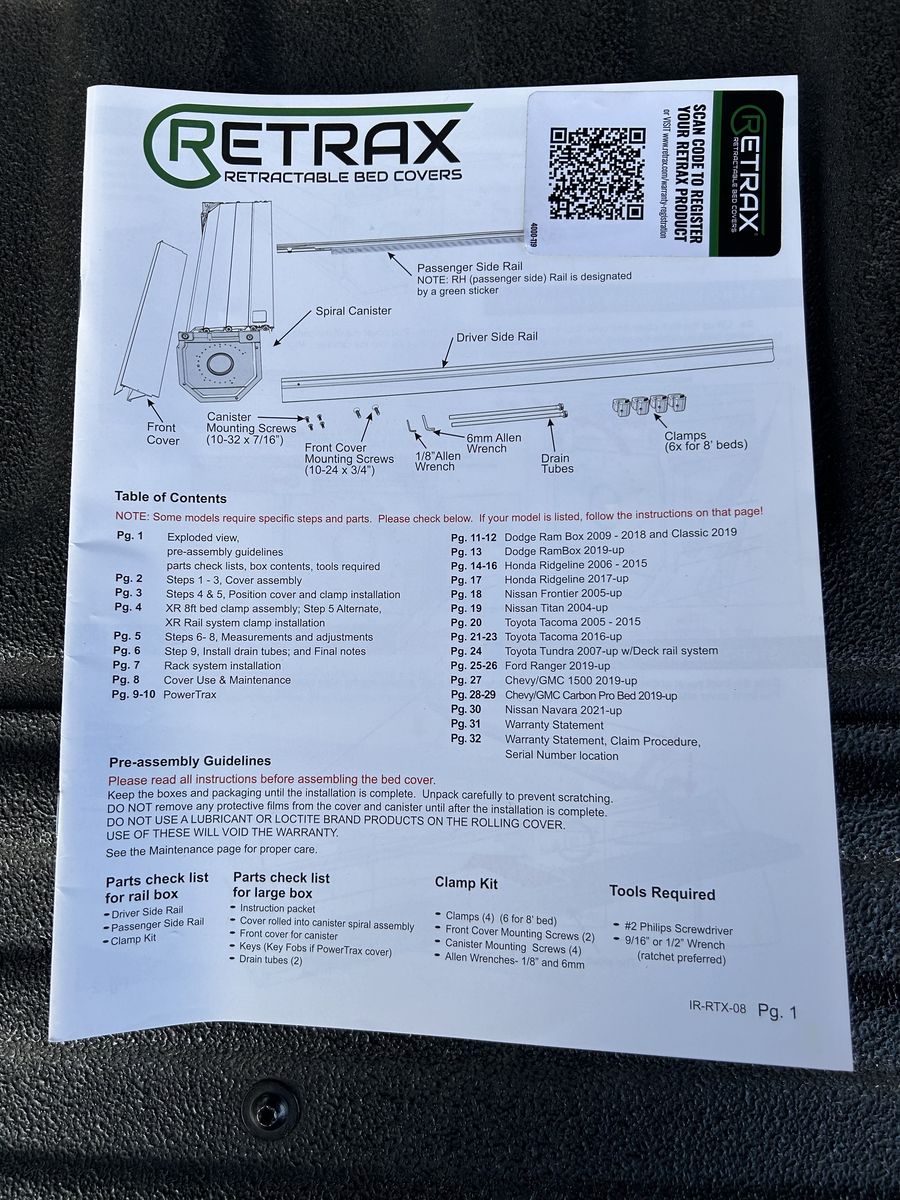 VenmoRetrax One XR retractable truck bed tonneau cover; model # T-60231; fits Dodge Ram Gen 4 2009-2018 & 2019 Classic with the 5’7” bed; the tonneau system is in great condition just going in a different direction; bars not included; $750.00.