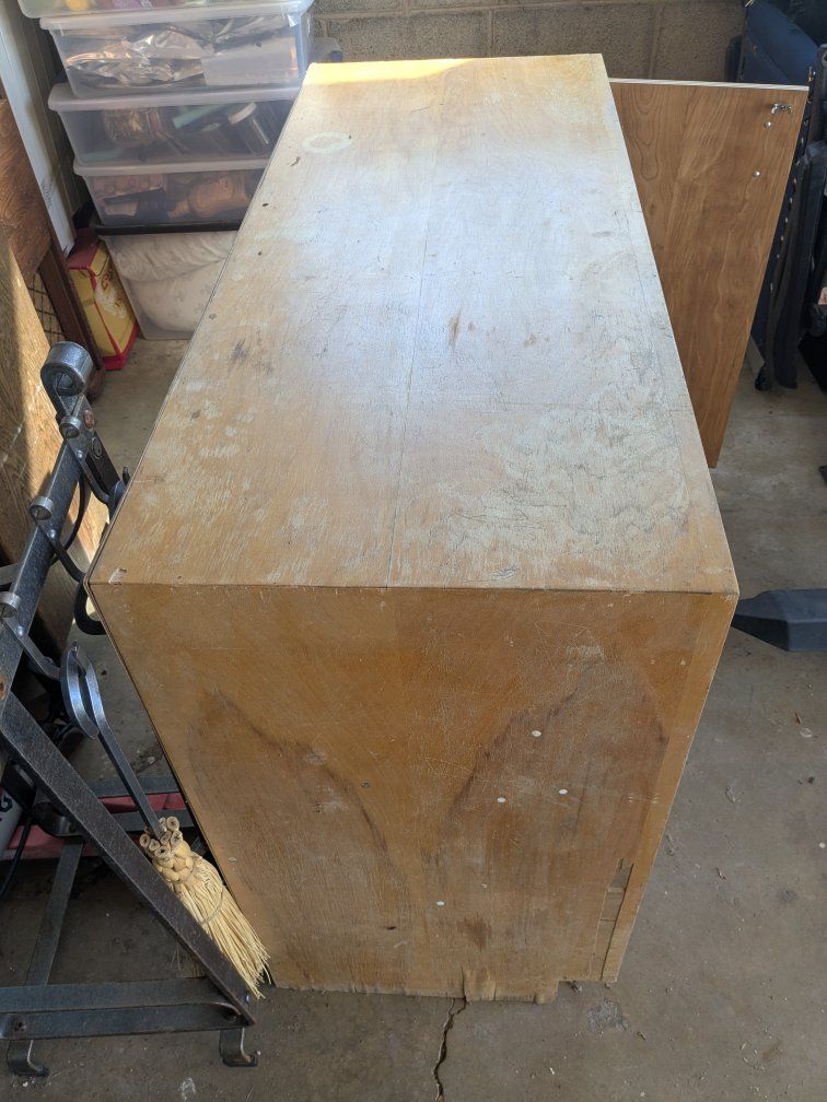 large vinyl record cabinet with many dividers and side cabinet. slidin glass doors. About 4 ft long 3 ft tall.