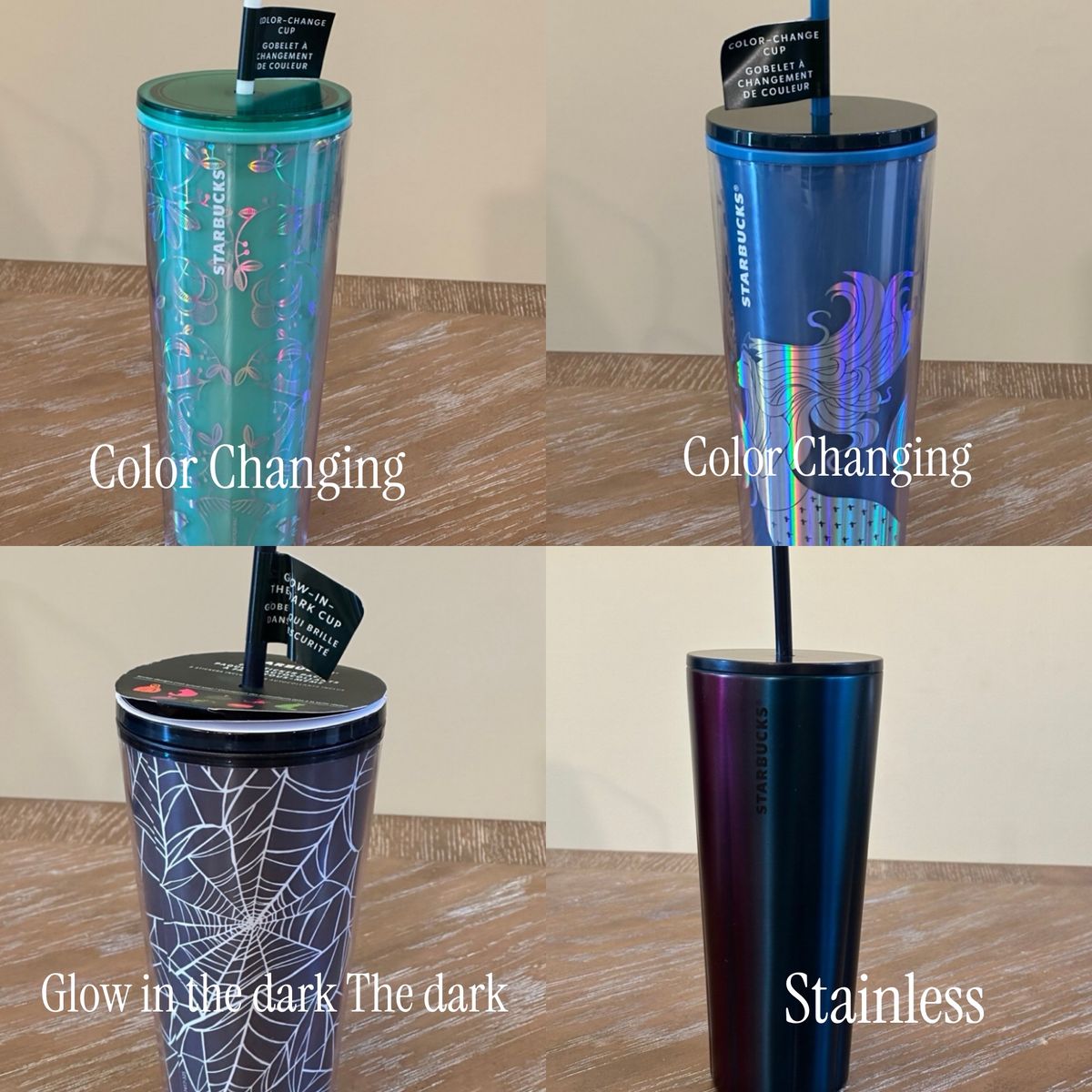 What’s Included: •17 Venti (24oz) tumblers • 6 Grande (16oz) tumblers Studded Iridescent ️2 Grid 2 Color-changing 2 Glow in the Dark 🥈1 Stainless U of U Utah Utes