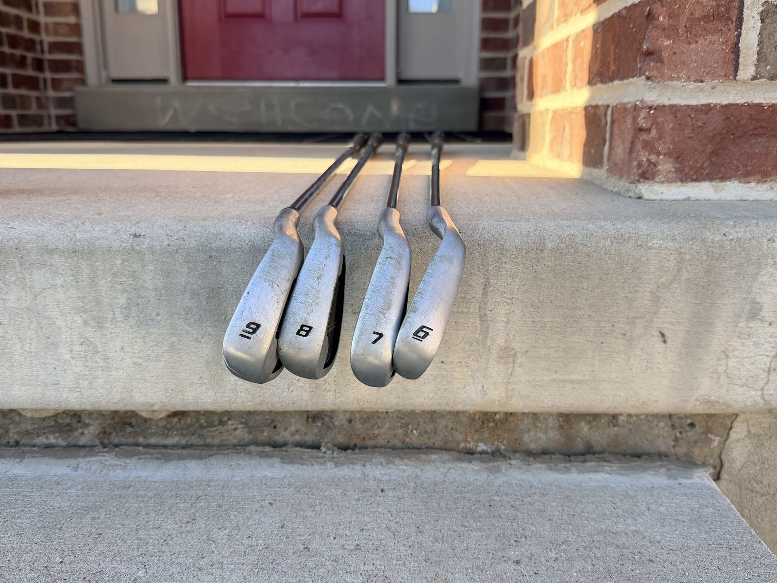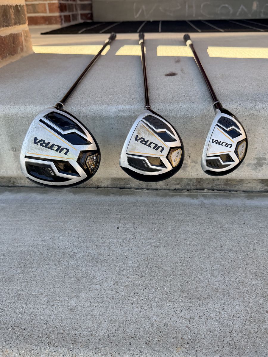 ApplePayUsed about 15 times they work just fine and are a great beginner club set. The set includes Irons 6,7,8,9 with a Driver, 5 Hybrid, 3 Wood and a Putter. (MISSING PITCHING WEDGE) With 2 Club covers