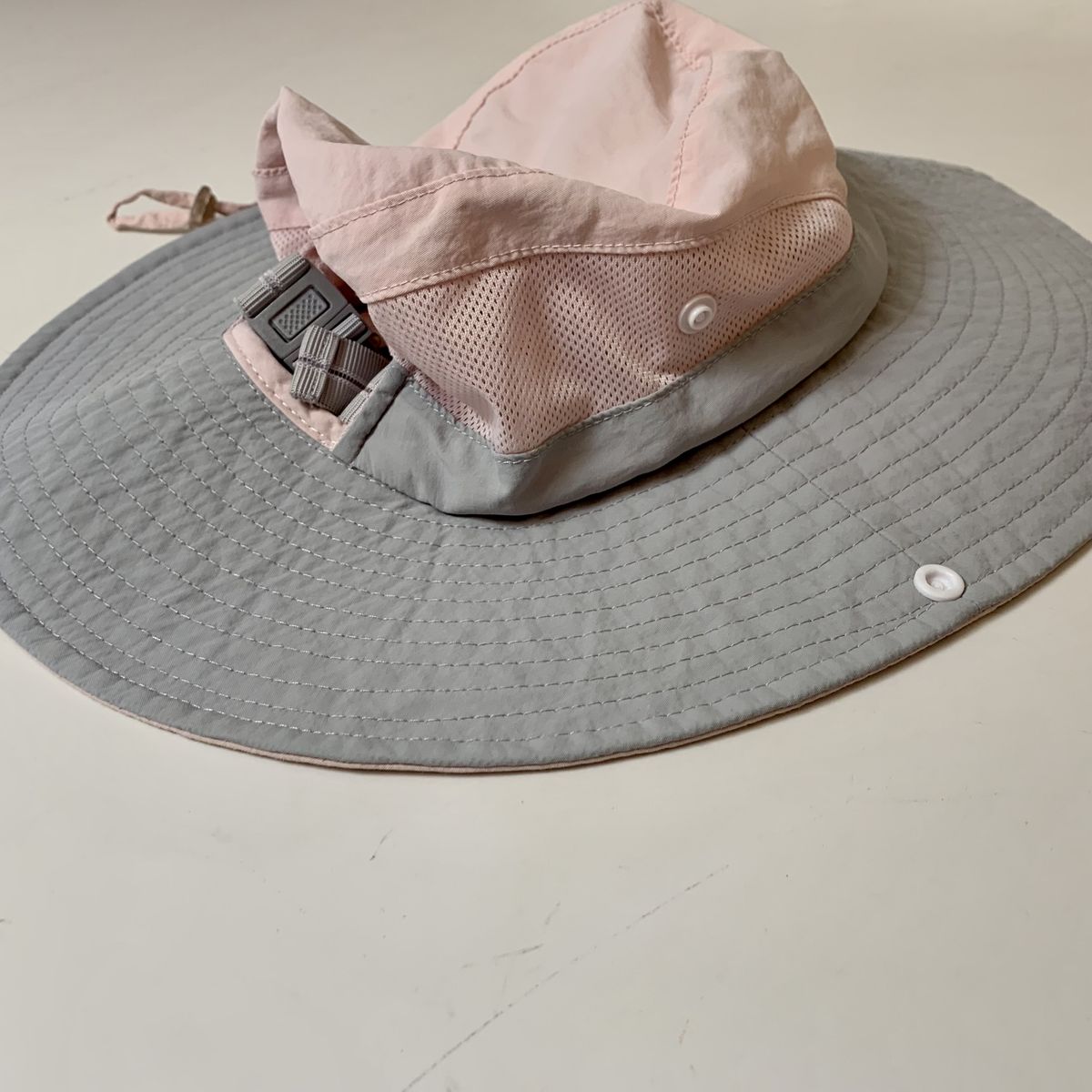 Venmo21.3 inches (54cm) circumference Adjustable chin strap, side snaps and polyester with top vents for cool shade while in the sunshine. Message me if interested in purchasing.
