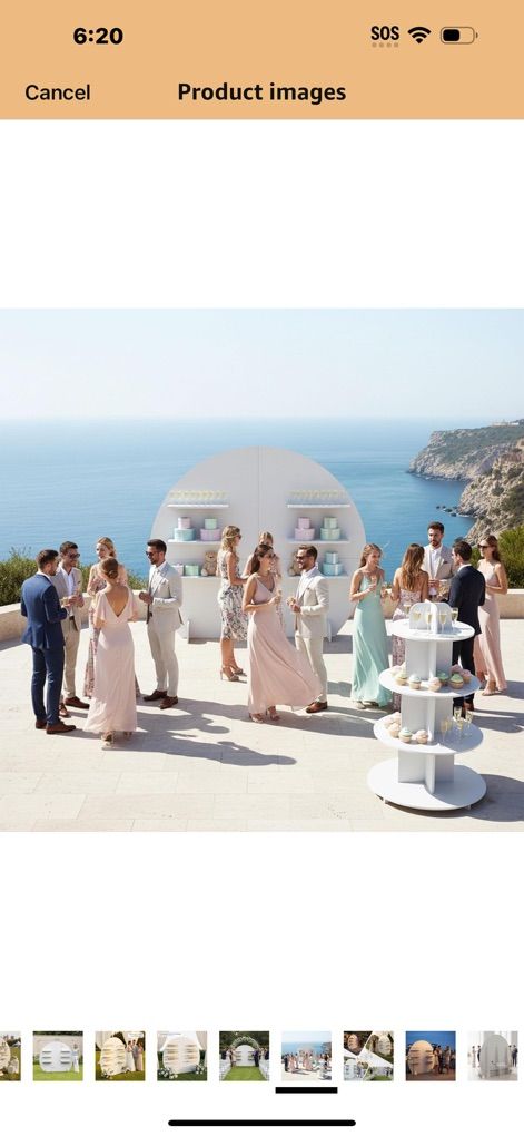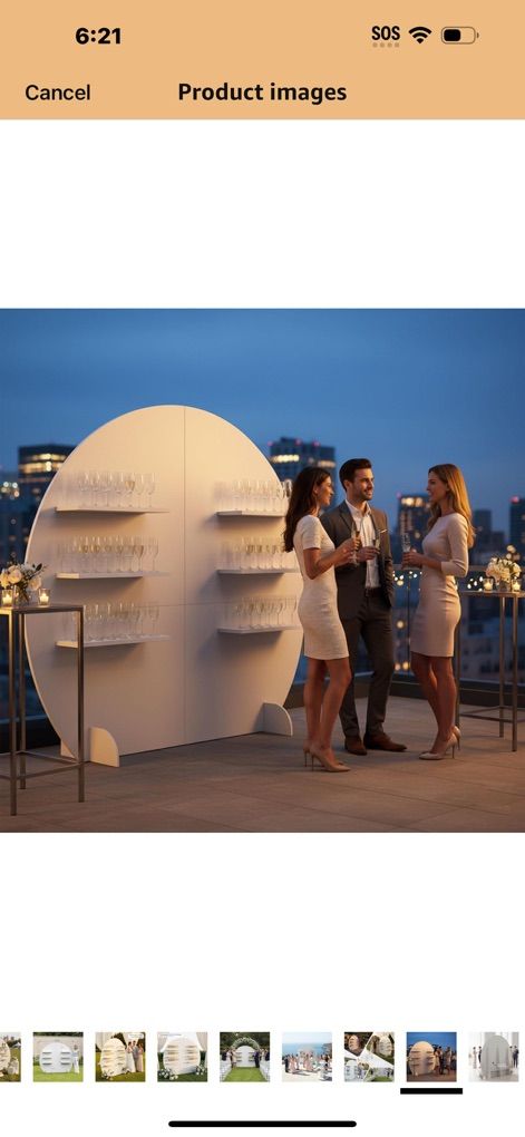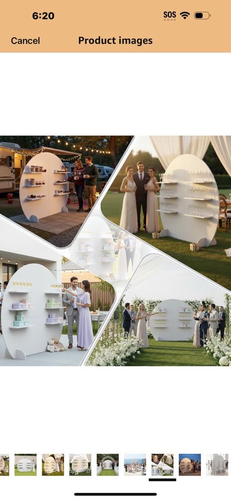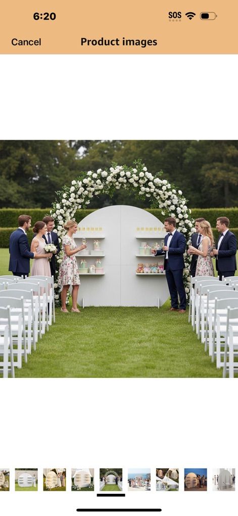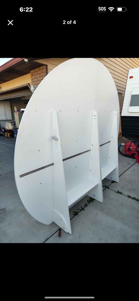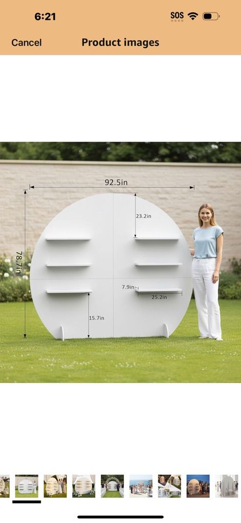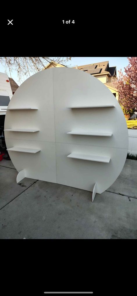 Champagne Wall Display Style — Semi-Circle Wood Backdrop Stand with Shelves, 92 x 78 Wedding Favor & Escort Card Display Wall, White Wooden Gift Display for Parties & Events