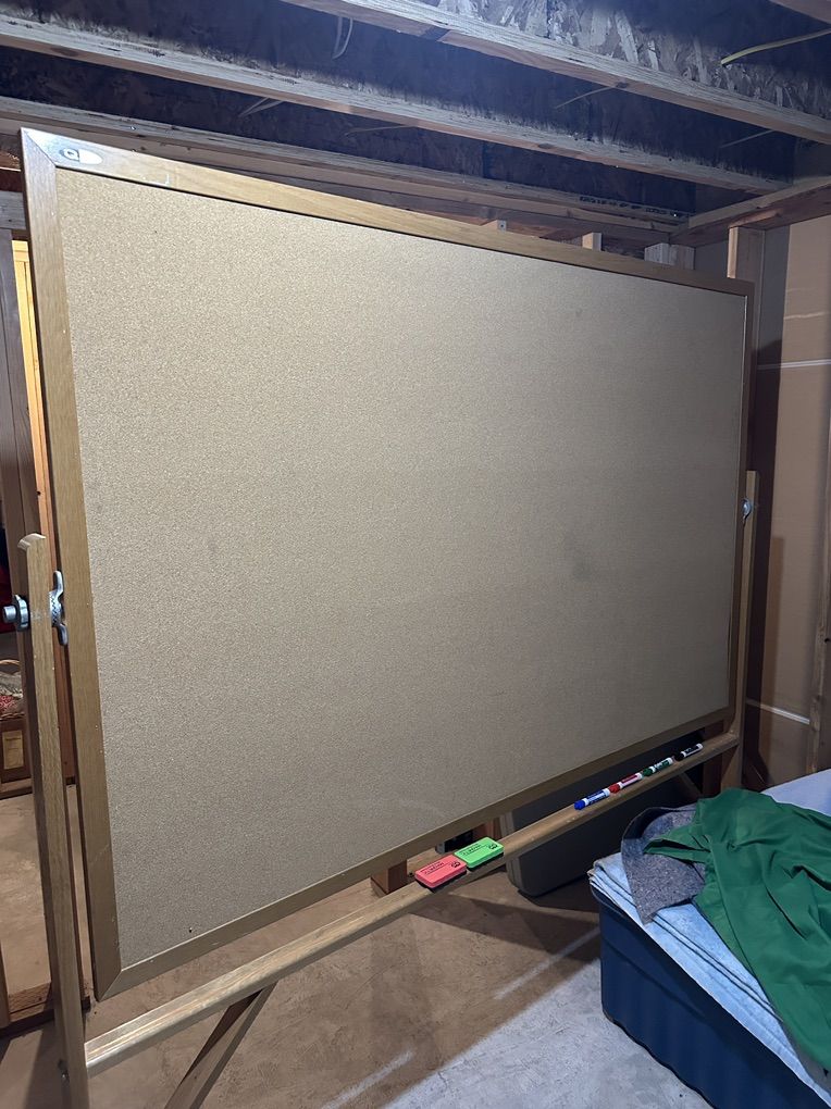 VenmoPerfect for your home office, studio, or classroom with this versatile, high-capacity mobile workstation. Unlike flimsy aluminum models, this unit features a sturdy, professional-grade hardwood frame that looks great in any environment and is built to last. This 3-in-1 setup is perfect for remote workers, educators, or content creators who need a flexible, professional backdrop. • 2-in-1 Reversible Surface: 48” x 72” (4ft x 6ft) whiteboard on one side for brainstorming and a full-sized corkboard on the other for pinning notes and planning. • Adjustable Angle Locking: The board rotates and can be locked at several different angles, allowing for ergonomic writing or glare reduction during video calls. • Integrated Green Screen Solution: Includes a custom-made green sheet made of specialized chroma-key material. Drape it over the frame to instantly create a professional virtual background for Zoom, Teams, or streaming. • Effortless Mobility: The entire unit glides on heavy-duty 2” casters, making it easy to reposition for a meeting or roll out of the way when not in use. • Convenience Features: Equipped with a full-length integrated tray for all your markers, pins, and erasers.