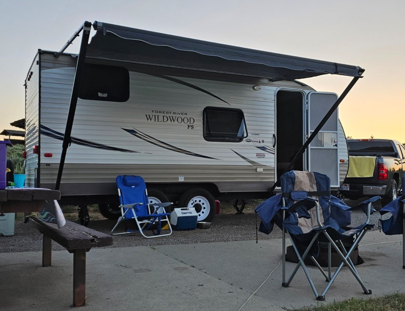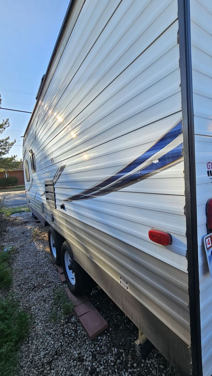 Those are just the recently added upgrades and extras. The camper is in excellant condition, everything works. Never cooked or showered inside. Hot water heater has been used once.