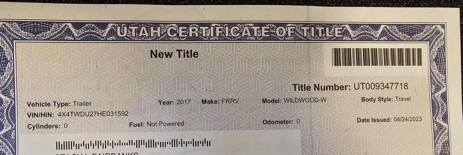 *Dual axle - Bearings just serviced and under carriage recently inspected. Tires have 2 trips on them.