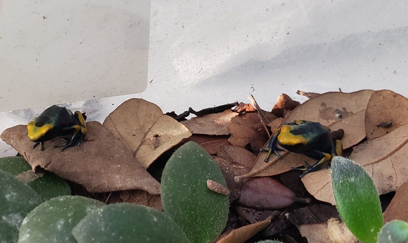 VenmoTumucumaque (Peacock) dart frogs. 2 months out of water. eating melanogaster fruit flies in grow out container. Beautiful large form of dart frogs. Do best in pairs as adults. Currently too young to sex Price is per frog