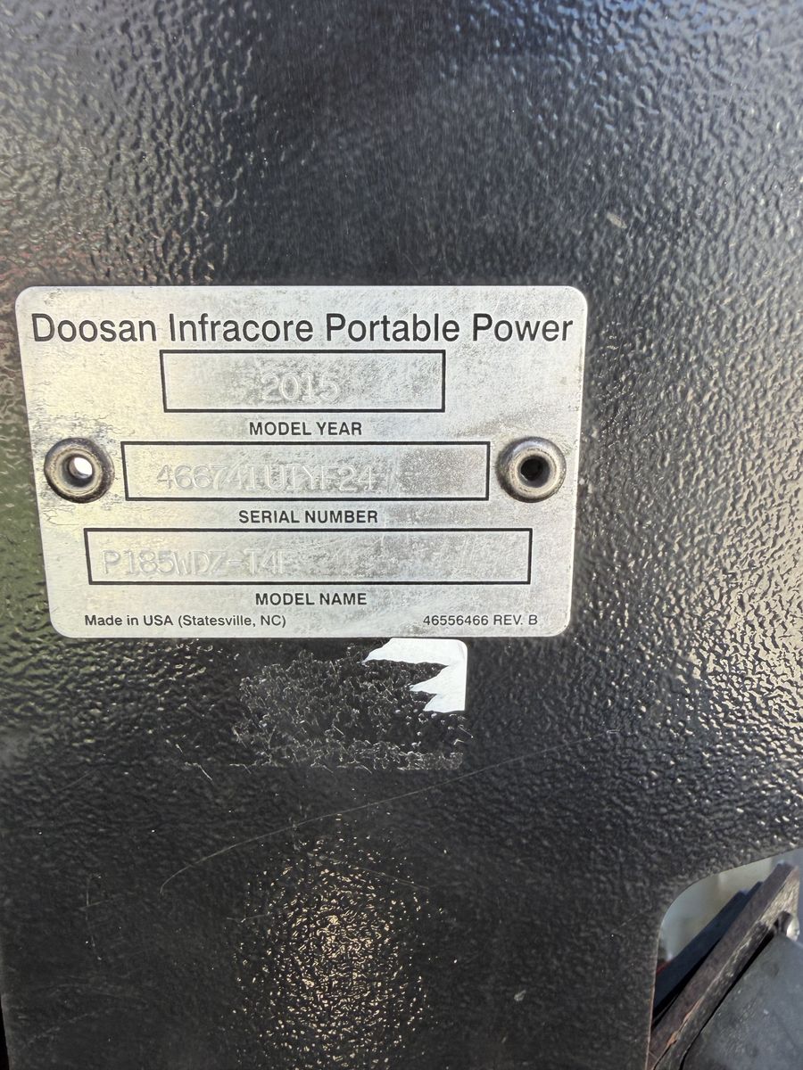 Selling this 2015 Doosan P185 towable air compressor with 3,322 hours. Tires are in really good shape with lots of tread left. Starts and runs great without any issues. Recently just got a full service. I’ve got a video of it running I can send you.