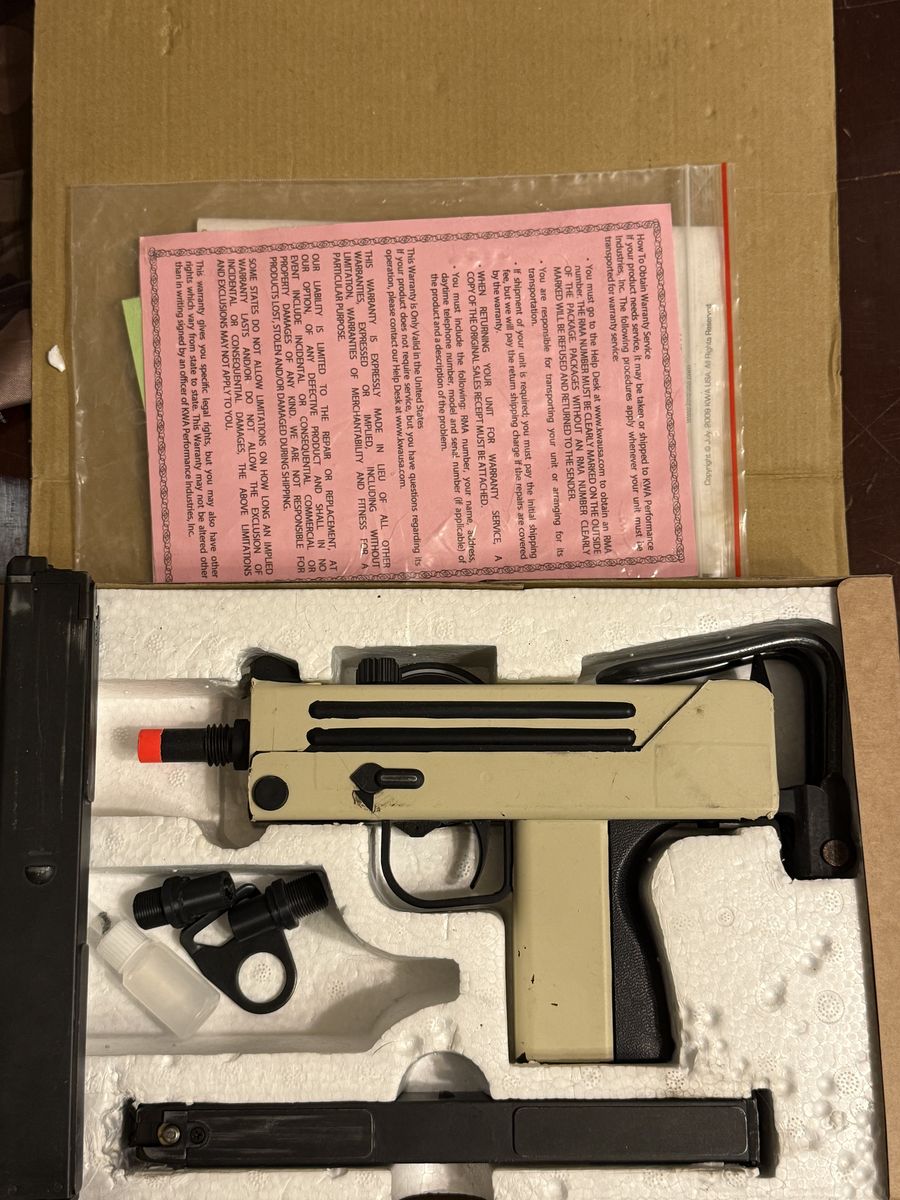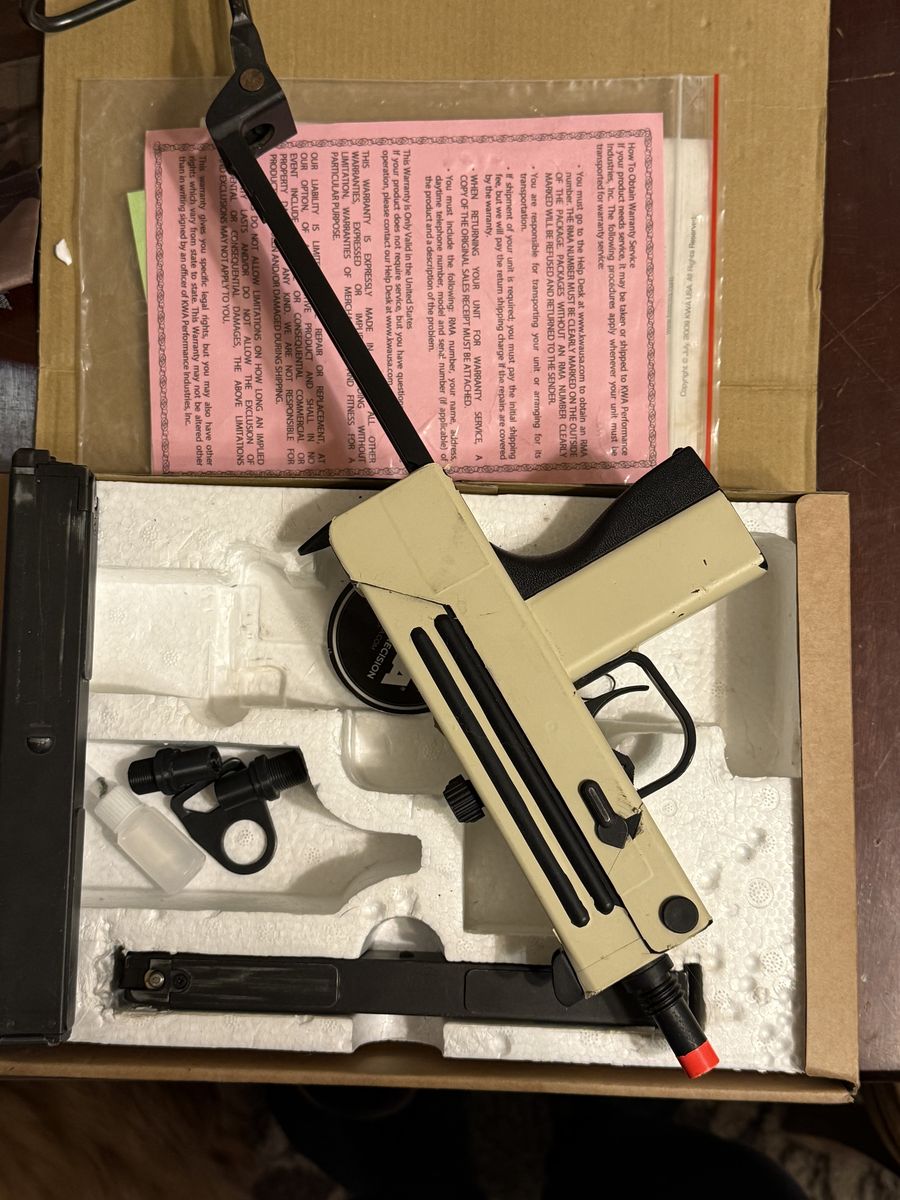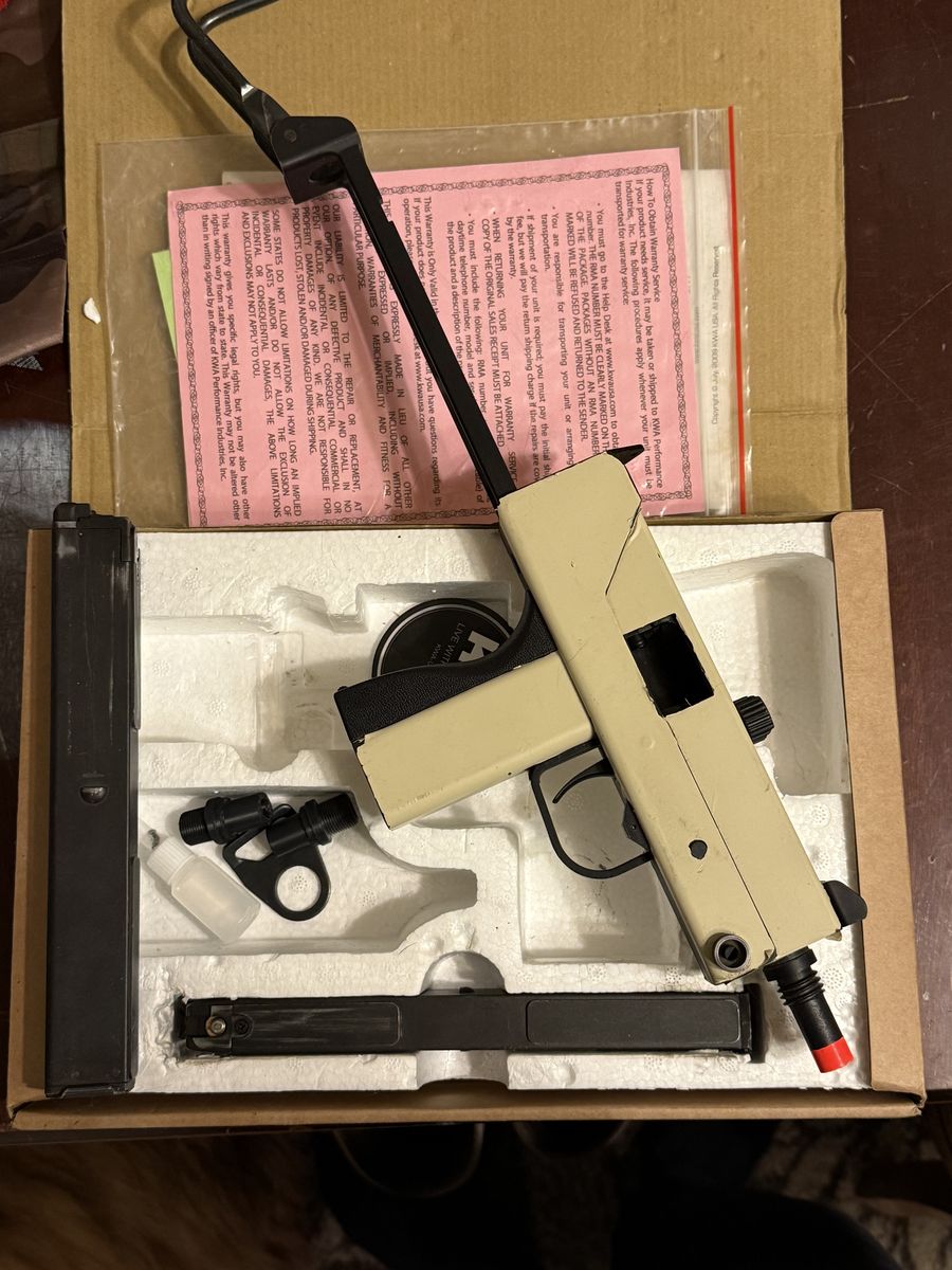 Fun gun, it shoots a mag in a couple seconds. It is an open bolt gas blow back and is a blast to shoot! I have an extra magazine for it. It has a vinyl wrap on it! Also comes with thread adapters so you can use a 14ccw suppressor! Use a couple time!