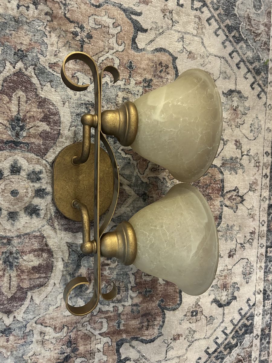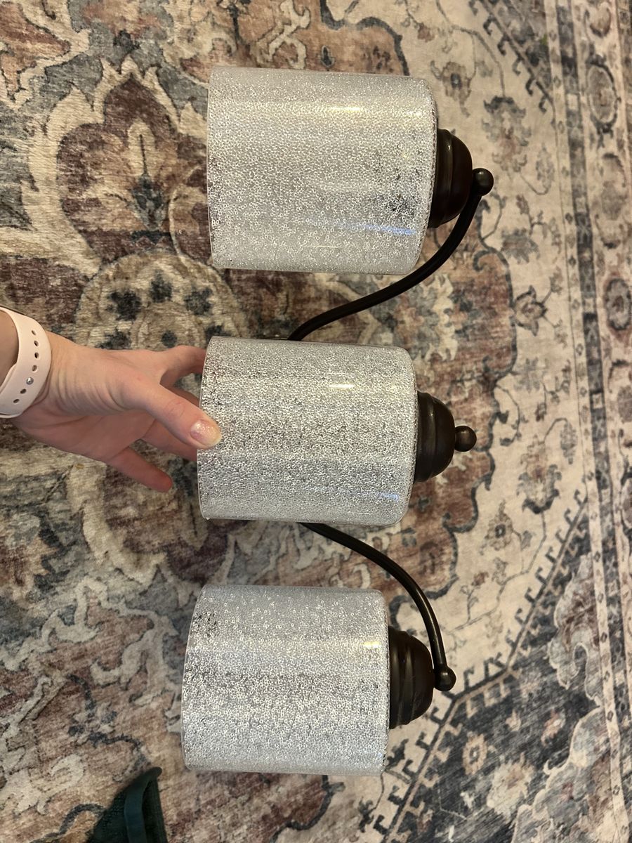 VenmoWe have 3 bathroom lights, the first is bronze with sparkly glass shades, the second is a bronze light with no glass shades and the third is a gold light with 2 glass shades attached. Asking $30 for all 3.