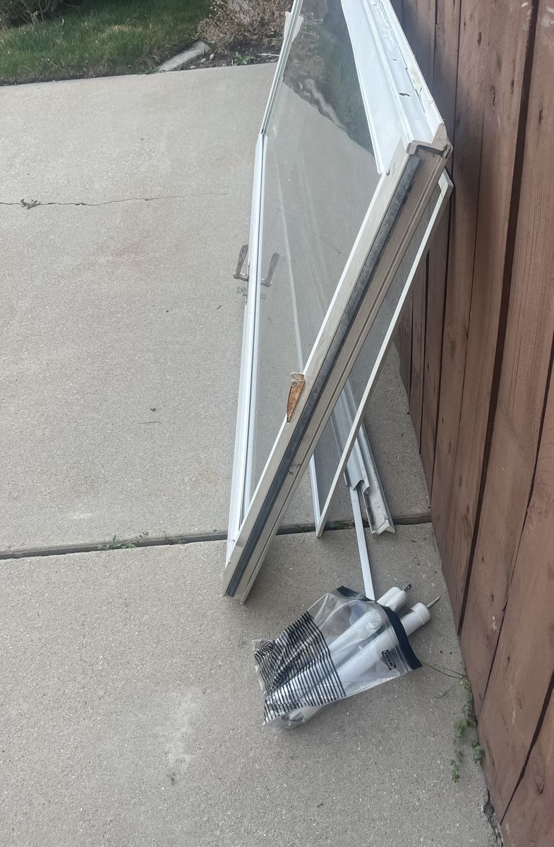 VenmoUsed storm door. We were using the screen insert and it ripped so we got a new door. It has been used for a few years so its a little dirty but has all the parts. Glass can be removed if needed for a replacement.