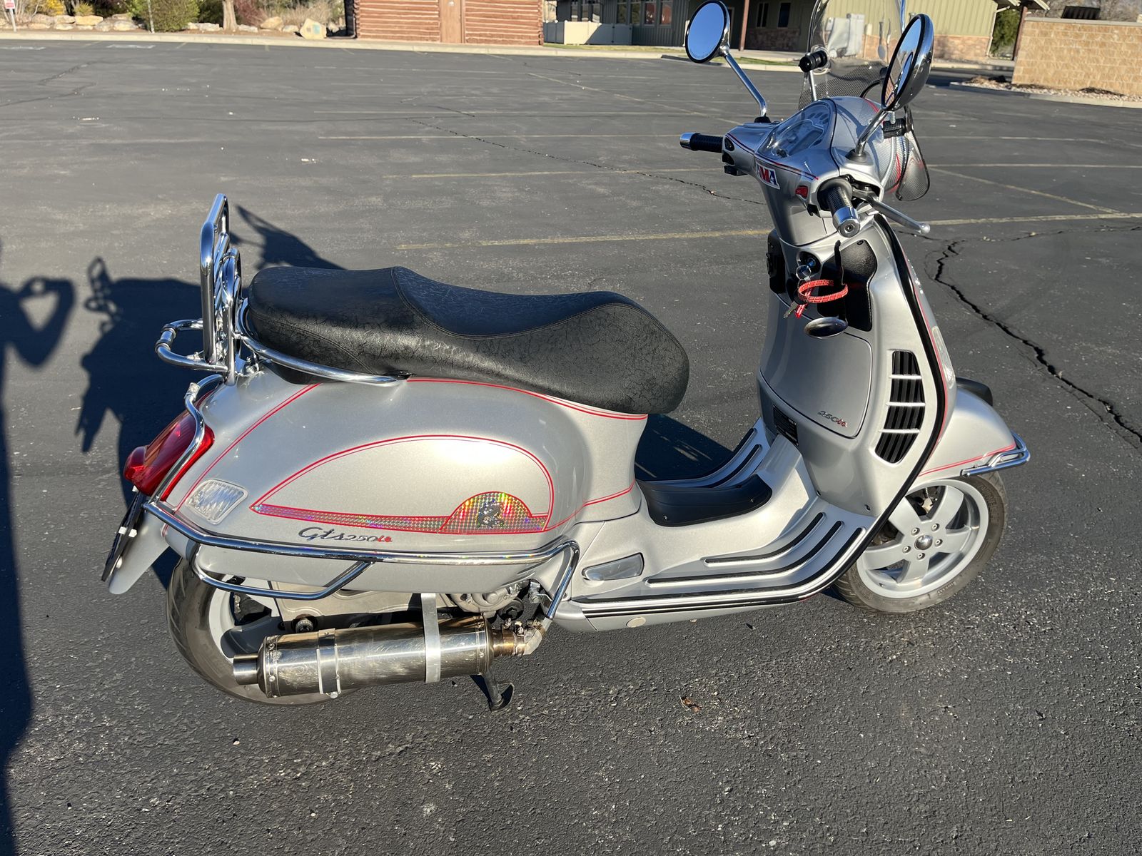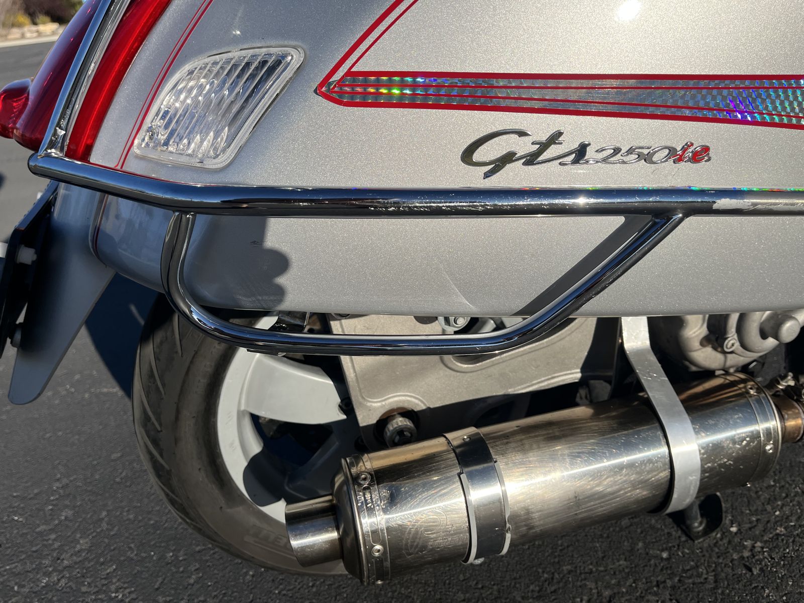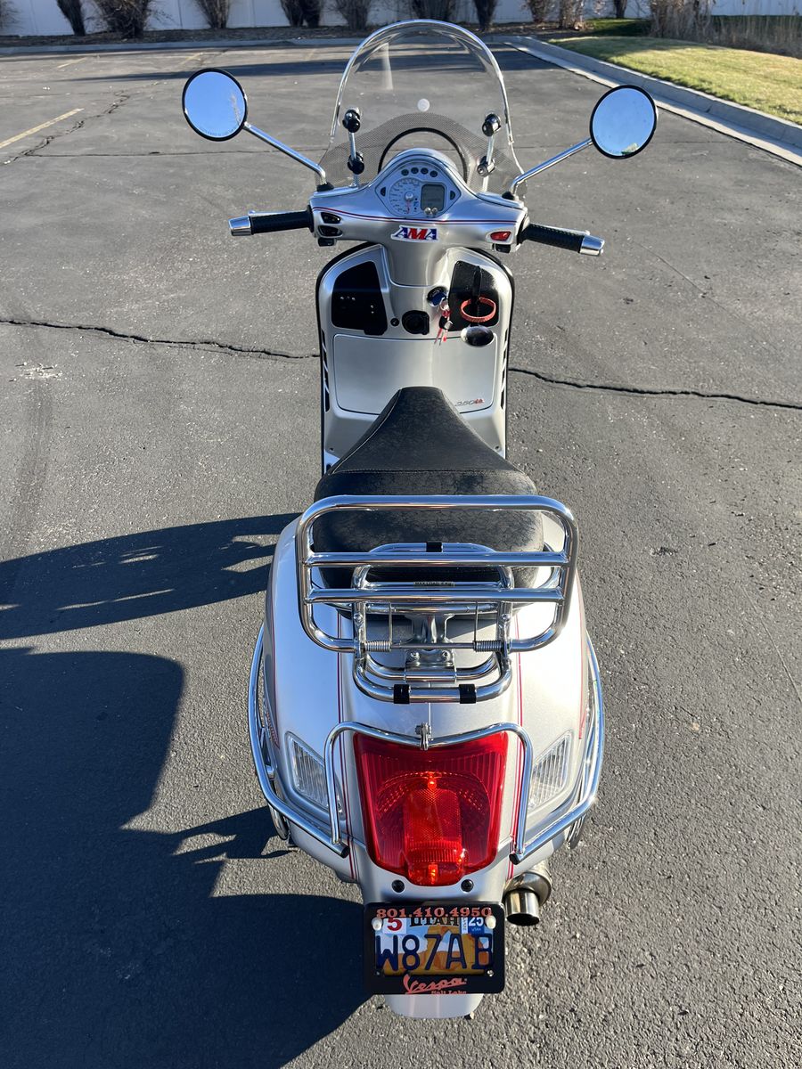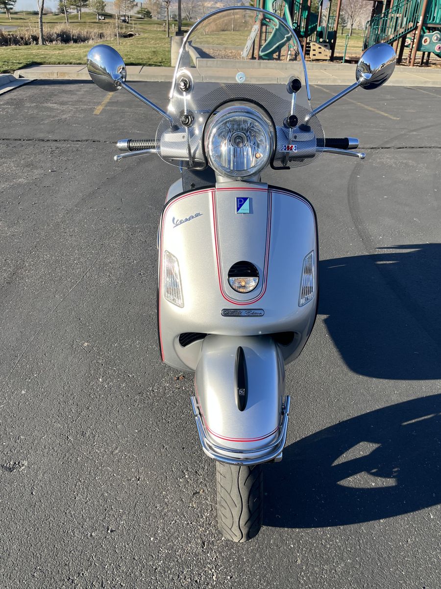 One owner 2008 Vespa GTS250ie Limited Edition scooter. 13,825 miles. Excellent condition. Meticulously maintained. 55-70 mpg. Top speed of over 75 mph. New Yuasa battery. Includes storage pod that can be installed in place of rear rack. Includes battery tender (plug under seat). Includes every manual you would ever want or need. Has lots of storage under seat. Fold out passenger pegs, Windshield etc. This was my dads pride and joy. Call, Text, or message with any questions. If calling please leave a message if I don't answer. Thanks for looking!