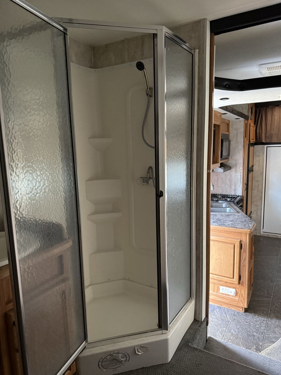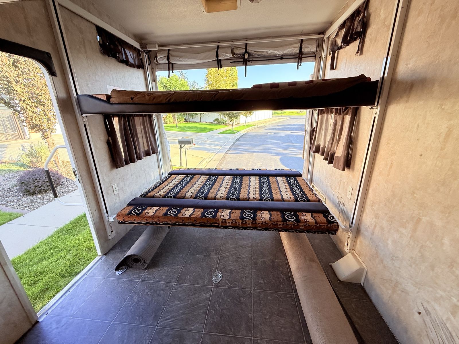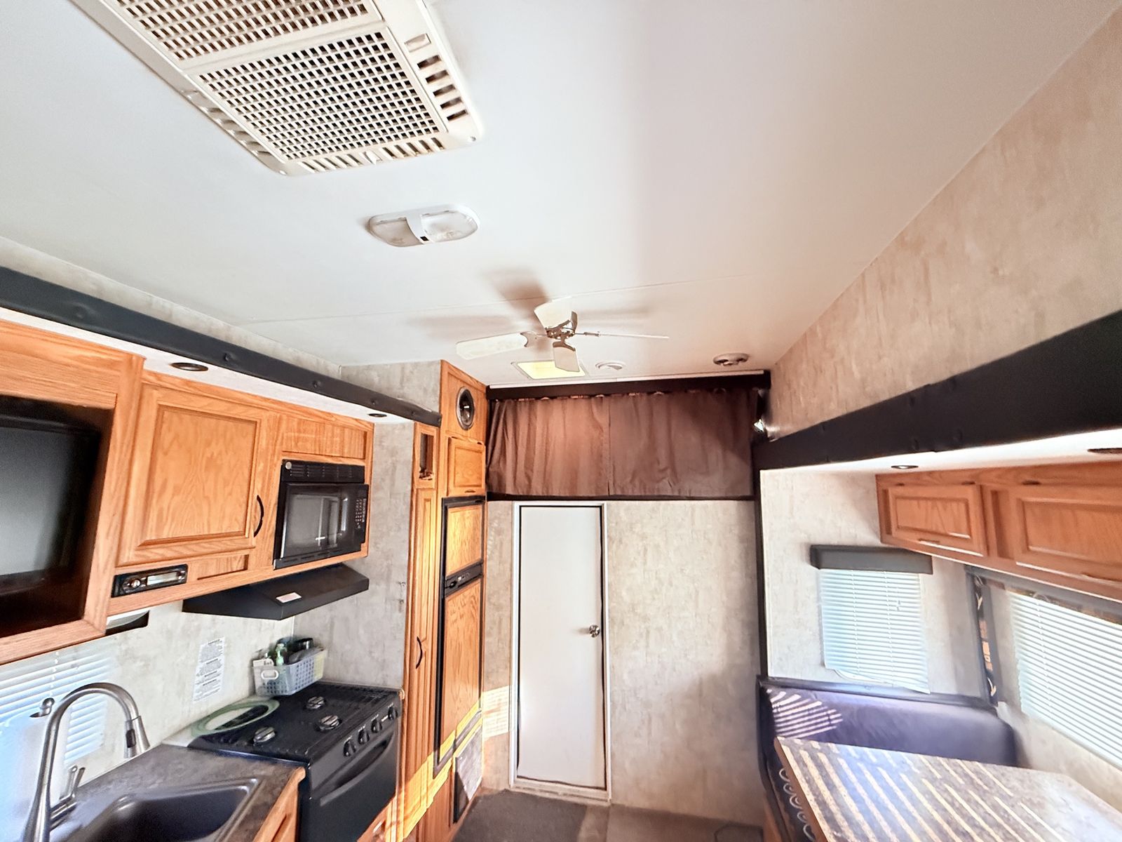 There’s a bonus bed in the loft with windows on each end, a queen-size bed with a sink, toilet, and shower, a large closet, and a great kitchen with all excellent working appliances.