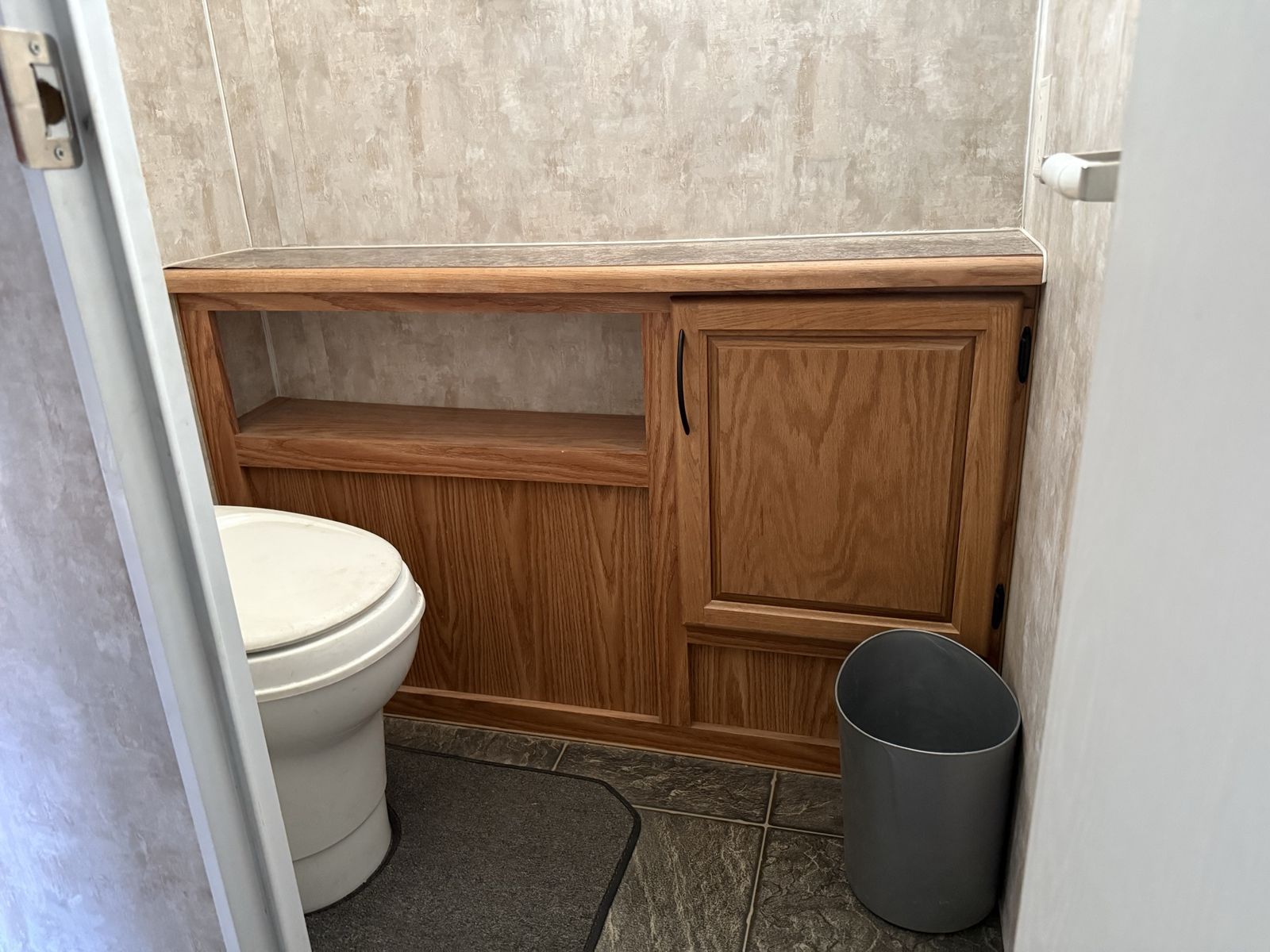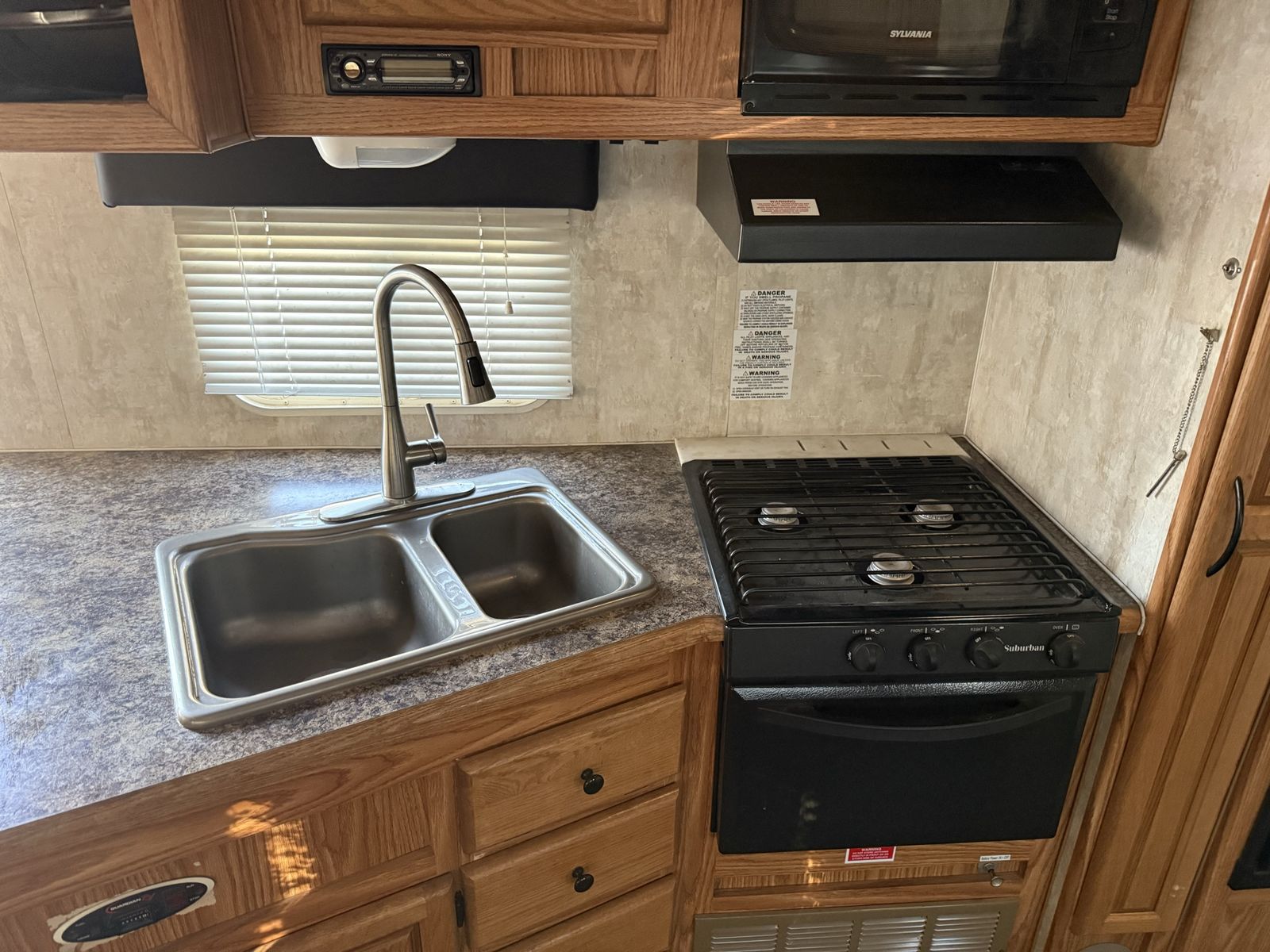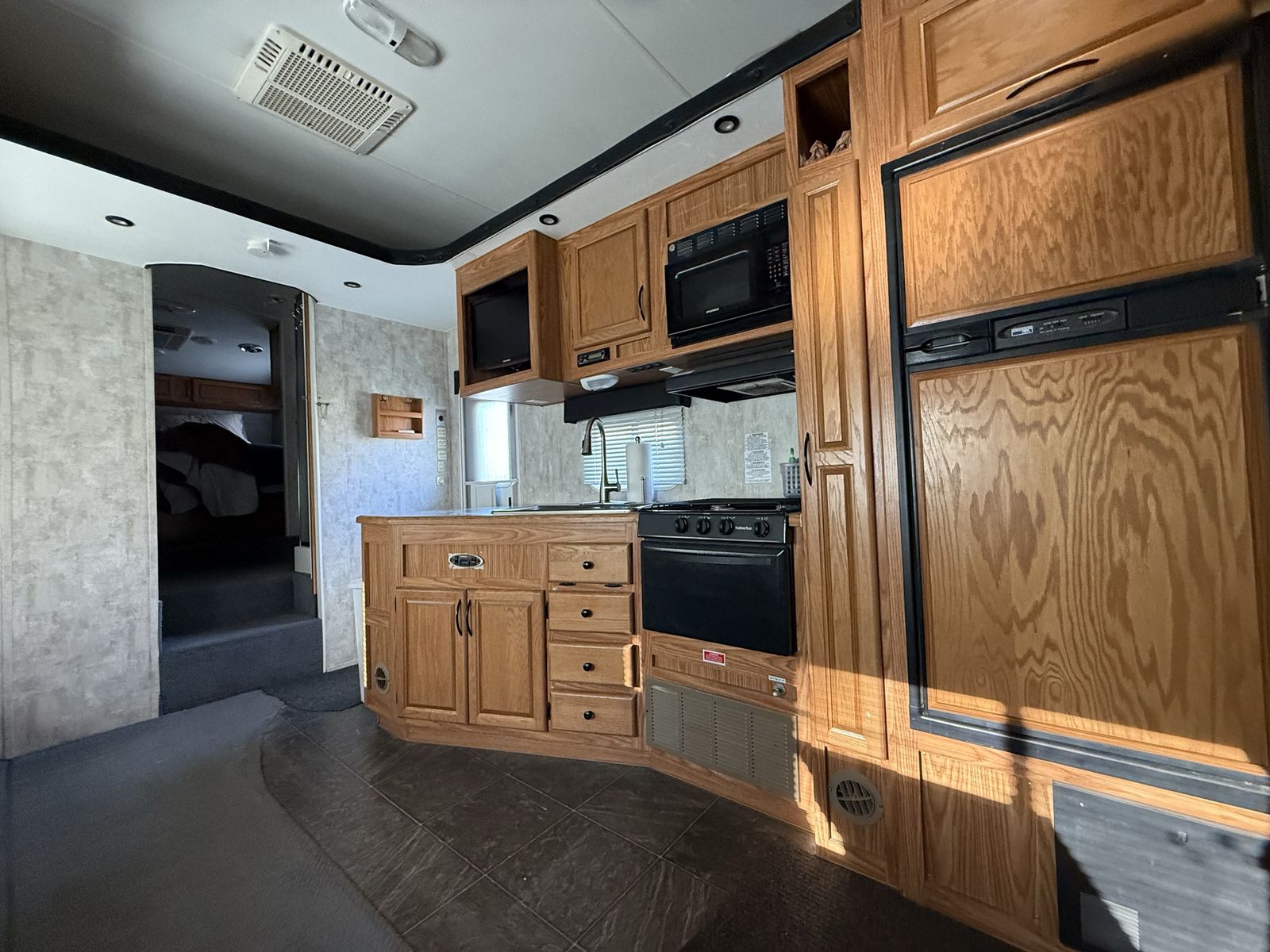 There’s a bonus bed in the loft with windows on each end, a queen-size bed with a sink, toilet, and shower, a large closet, and a great kitchen with all excellent working appliances.