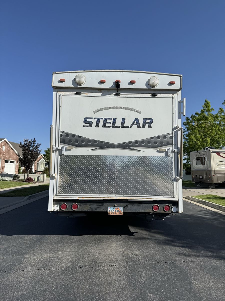 This 2007 Stellar Eclipse 39’ toy hauler is equipped with new tires, a triple axle with a 25k GVWR, and a 12k dry weight.