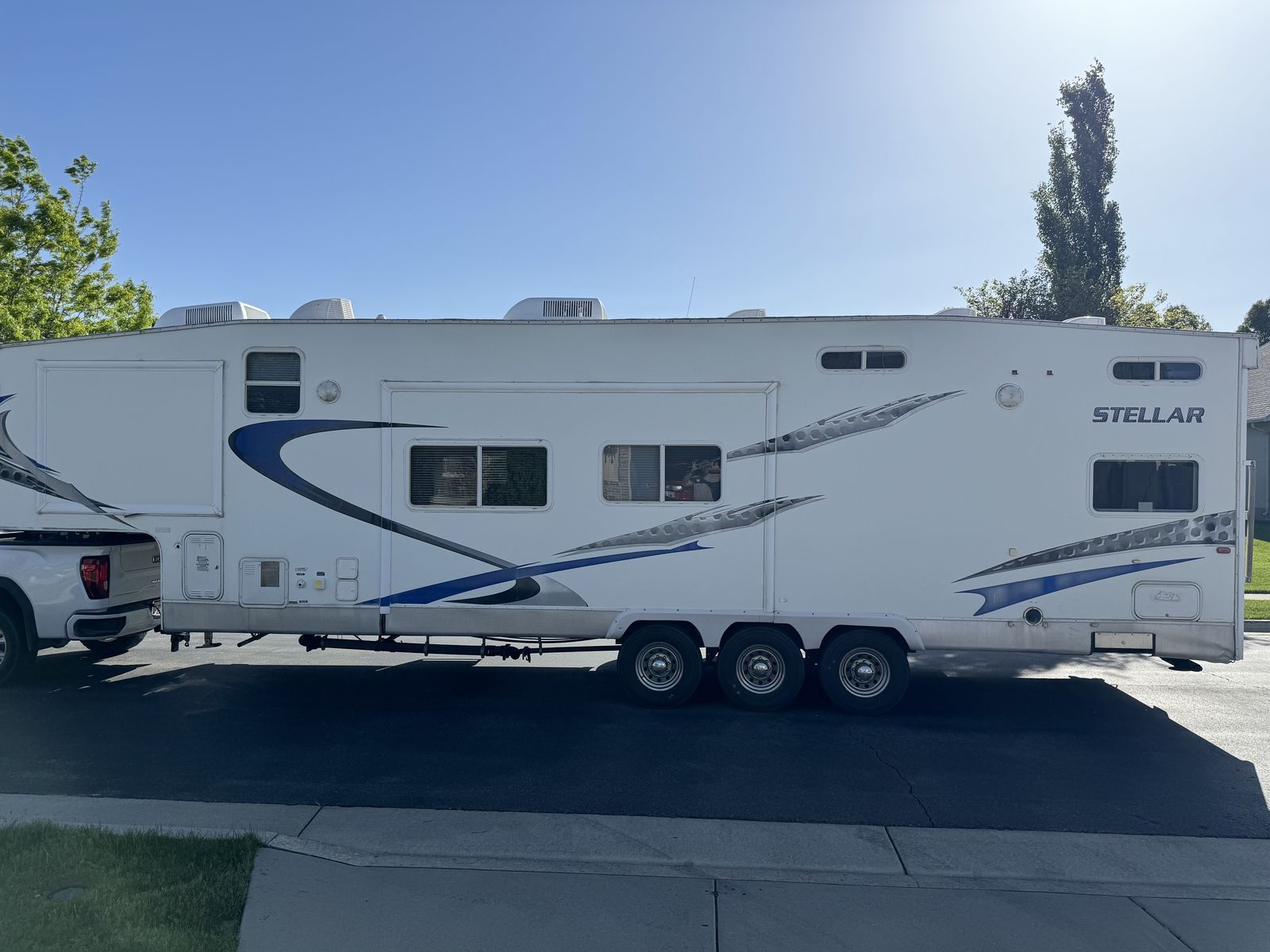 2007 Stellar Eclipse 39’ toy hauler fifth wheel New tires Triple axle 25k GVWR 12k dry weight GENERAC 5000 w generator with remote start Garage is 11-7 2 Roof Mount HIGH OUTPUT air conditioners Furnace heats like a champ 2 queen beds in garage lift up to make space for machines or other goods. Table coverts to twin Couch coverts to twin Bonus bed in the loft with windows each end Queen size bed with sink, toilet, shower big closet Great kitchen with all excellent working appliances The garage is separated from the main cabin for privacy with a locking door Fits 2 Yamaha Grizzly 700 quads side by side Tv hookups Retractable Multi-Directional Antenna New heavy duty jacks individually controlled Has large storage compartment outside as well as large overhead storage inside New 14 ply tires 2 slide outs. One for master bed closet and one for the entire kitchen area. Thanks for looking! Make an offer if you are a serious buyer!