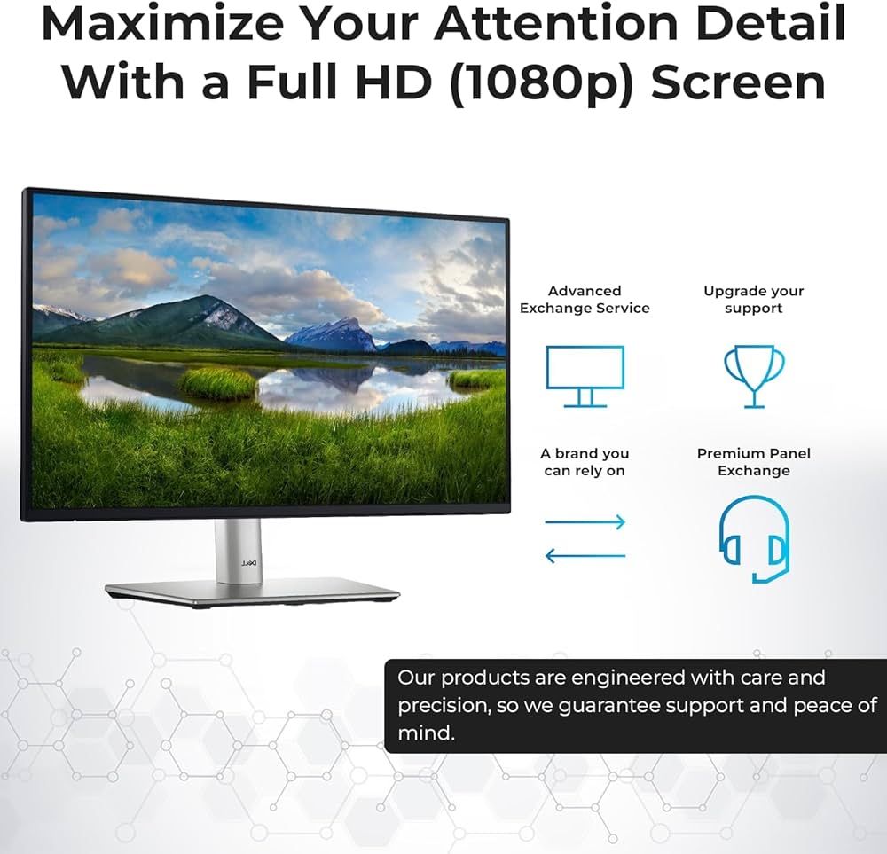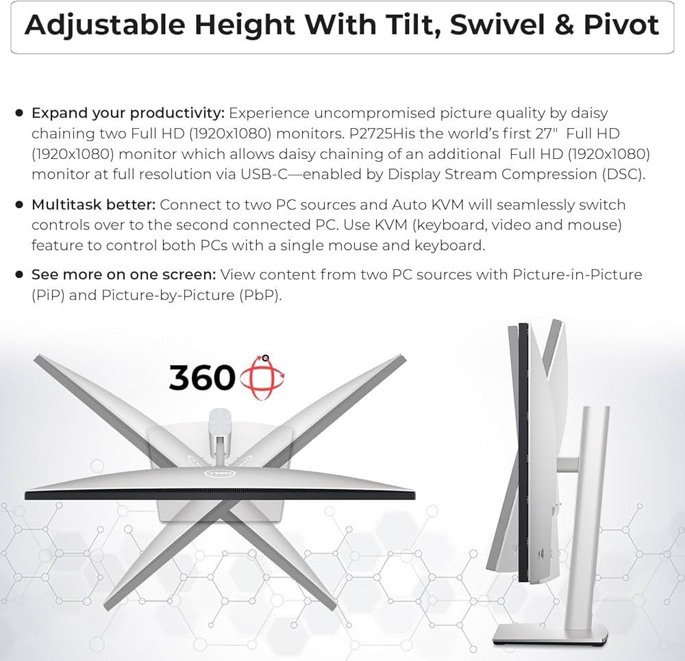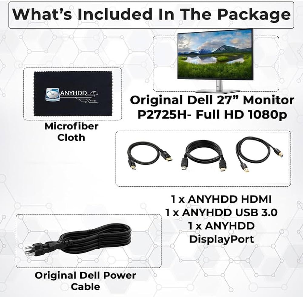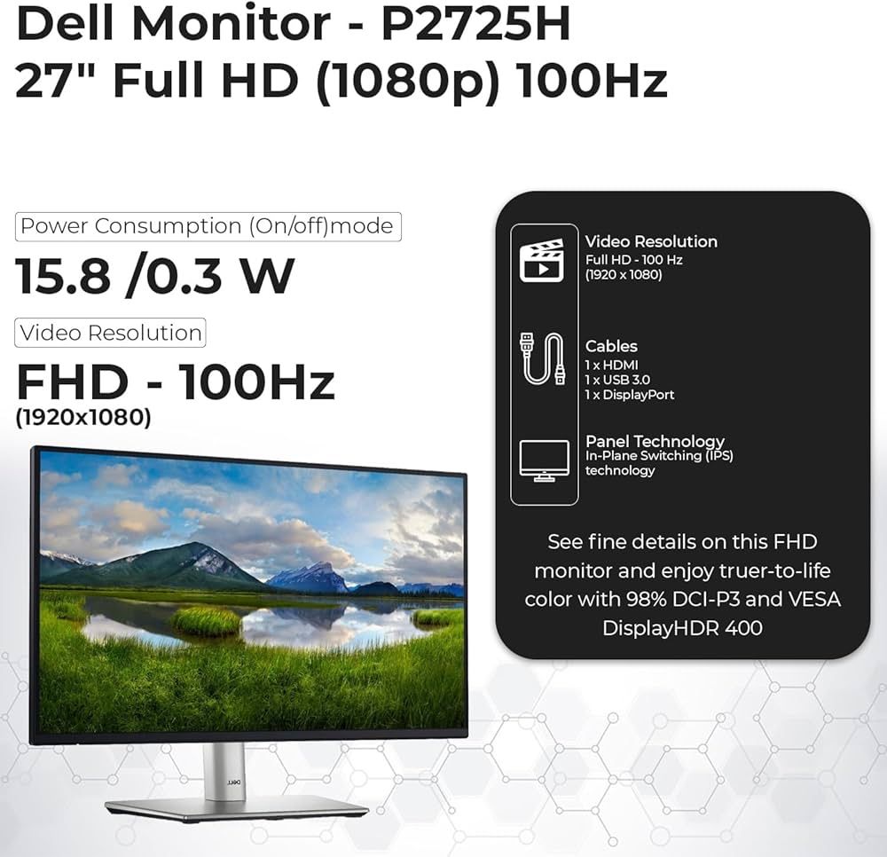 Dell P2725H 27" Full HD 1920 x 1080 Monitor - 1 Year Warranty, Computer Monitor Screen Bundle with Power Cable USB 3.0 Upstream Cable DisplayPort + HDMI Cables + Cloth