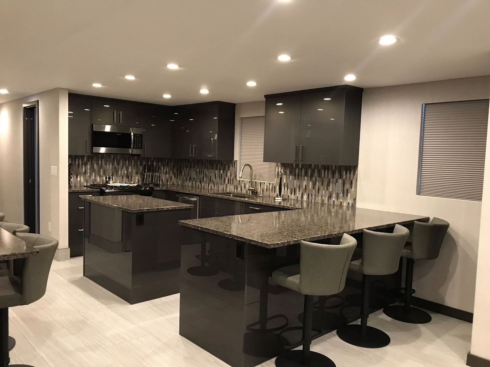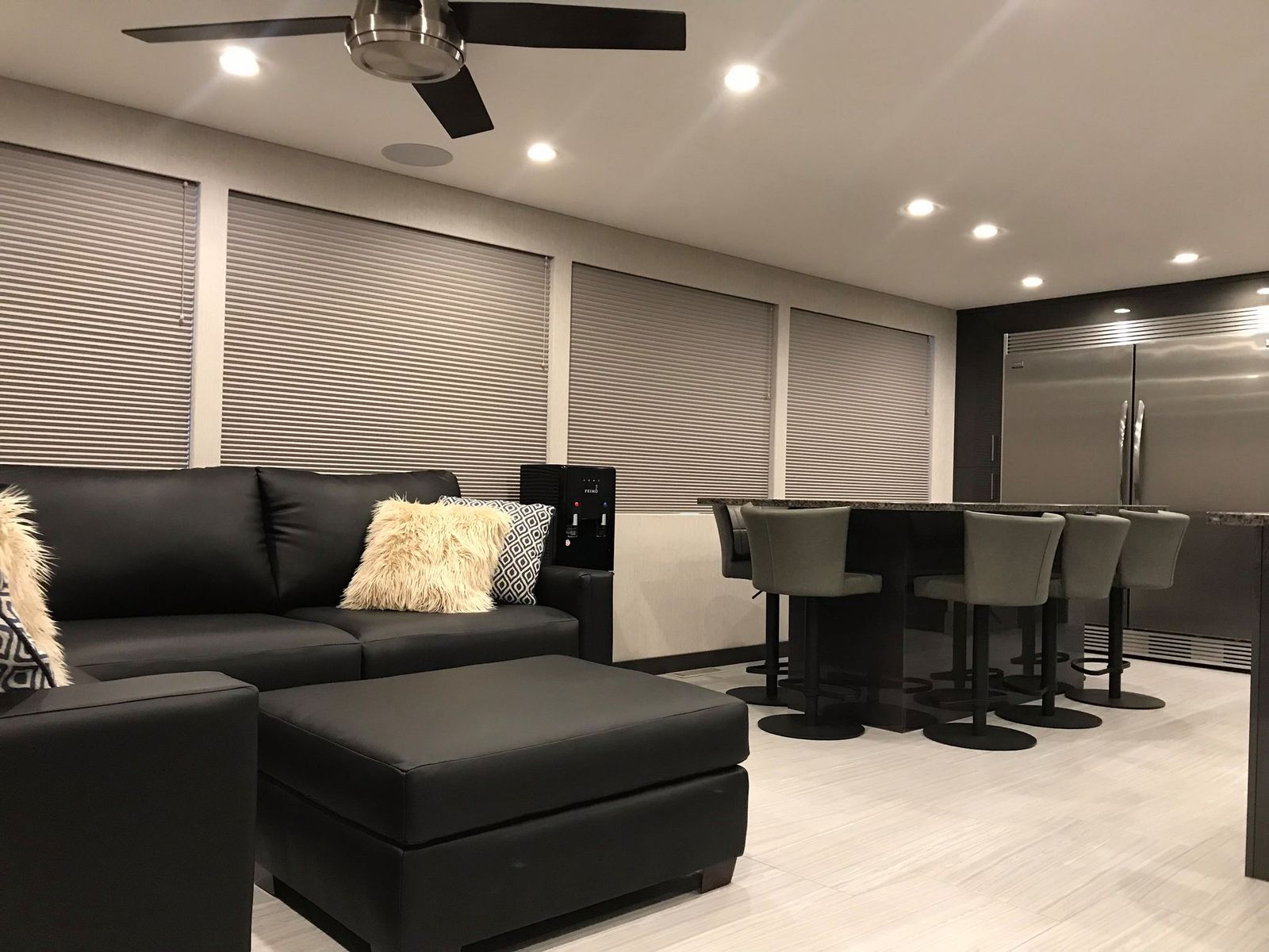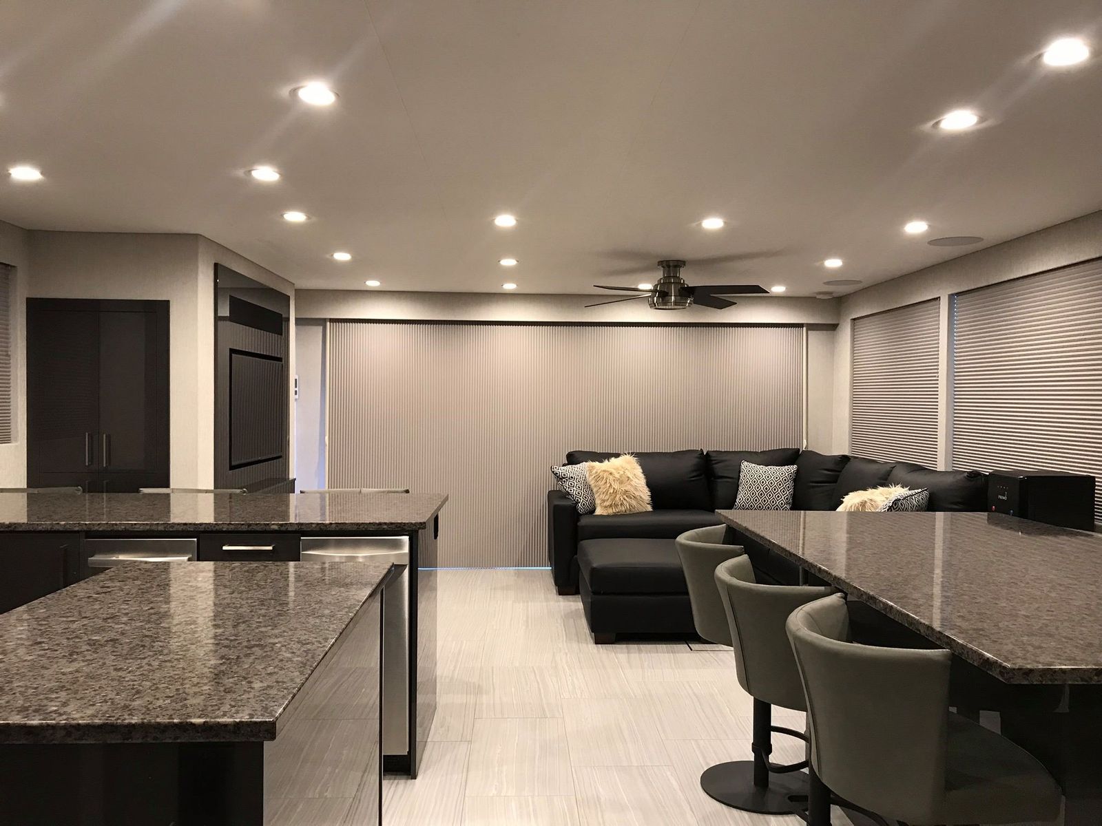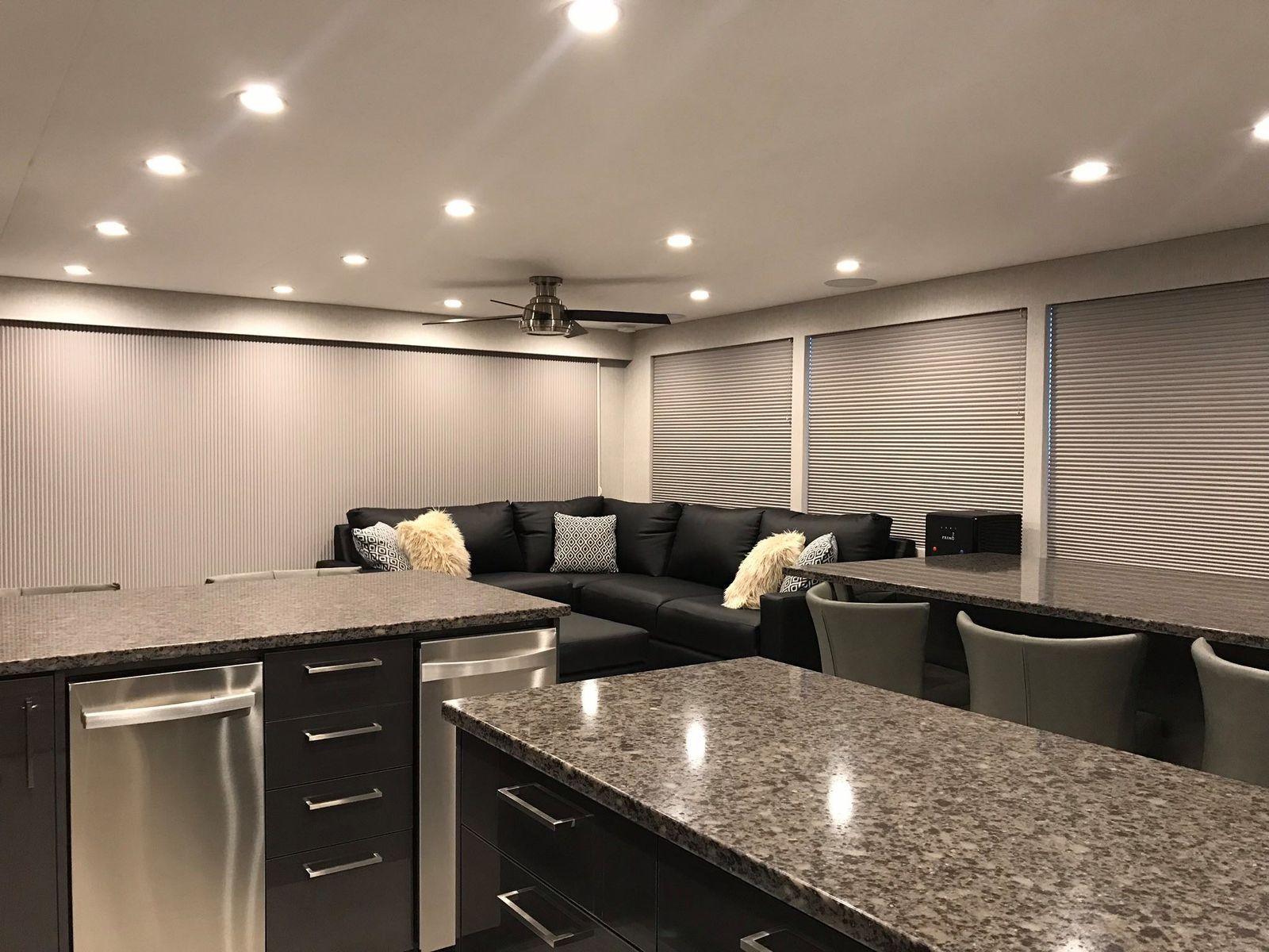 Dual Bars with Sink, Dishwasher, Microwave, Range & (8) Barstools on Upper Deck