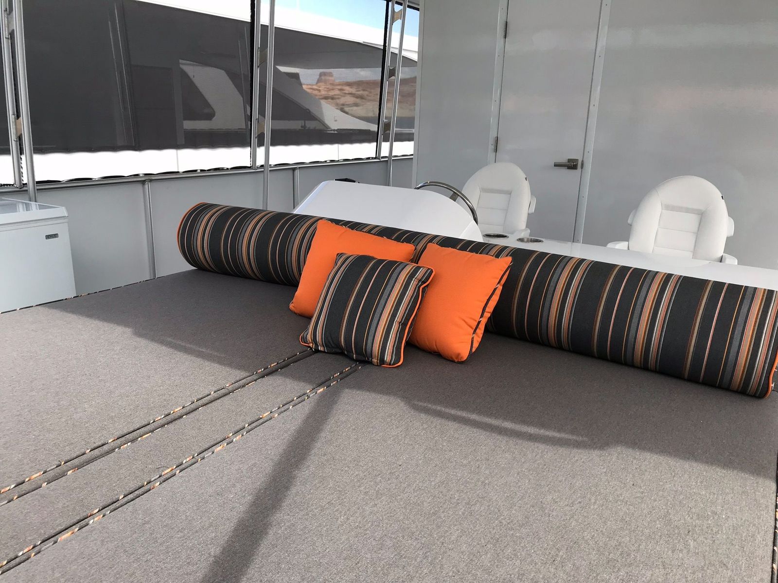 Upper Deck Sleeping Pad in front of Helm