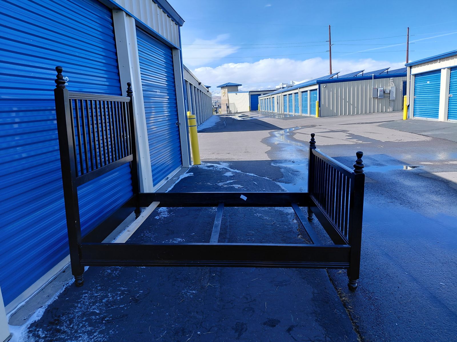 Check out this super cute wood queen. Overall, it is in good condition. There might be some imperfections from moving, a few scratches, dings in the wood, and signs of use, etc. You can easily refinish the bed to your liking.