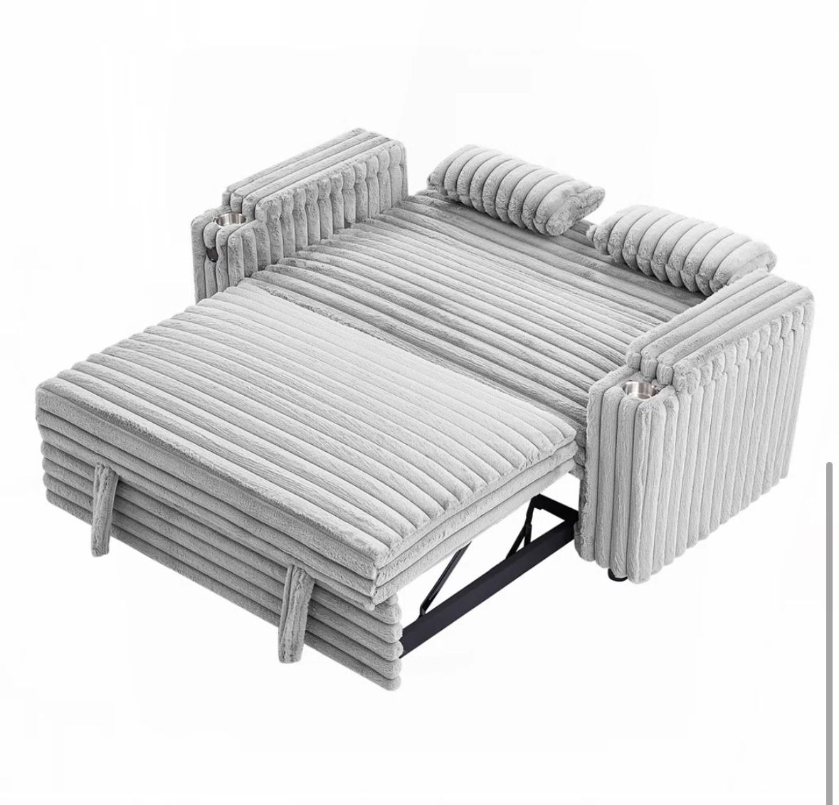 VenmoNEW IN BOX! Minky-style sofa with pullout bed in Gray corduroy super soft fabric. Convertible loveseat to pullout bed.