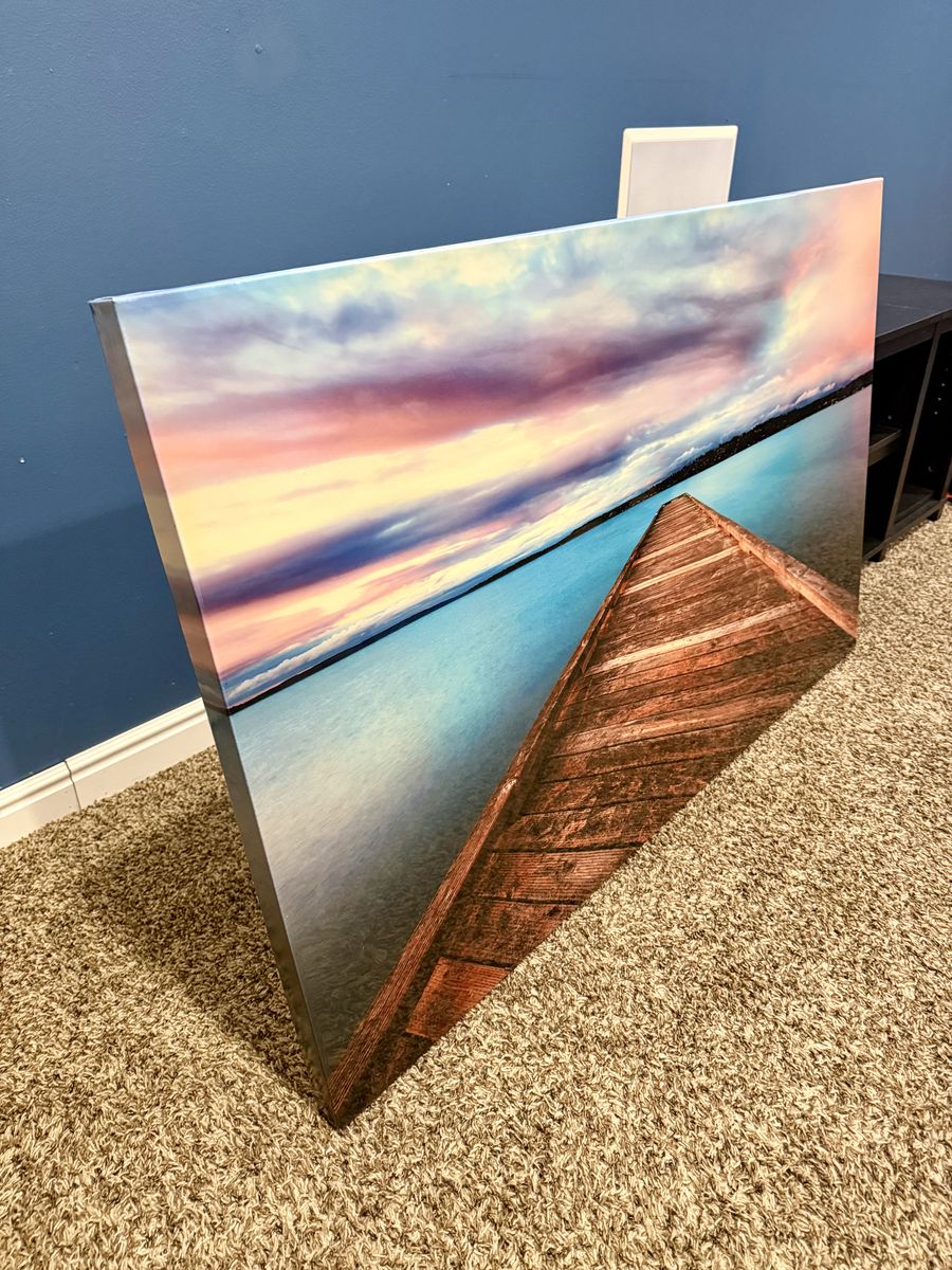 Beautiful dock lake picture. Glossy finish, 30 in x 48 in
