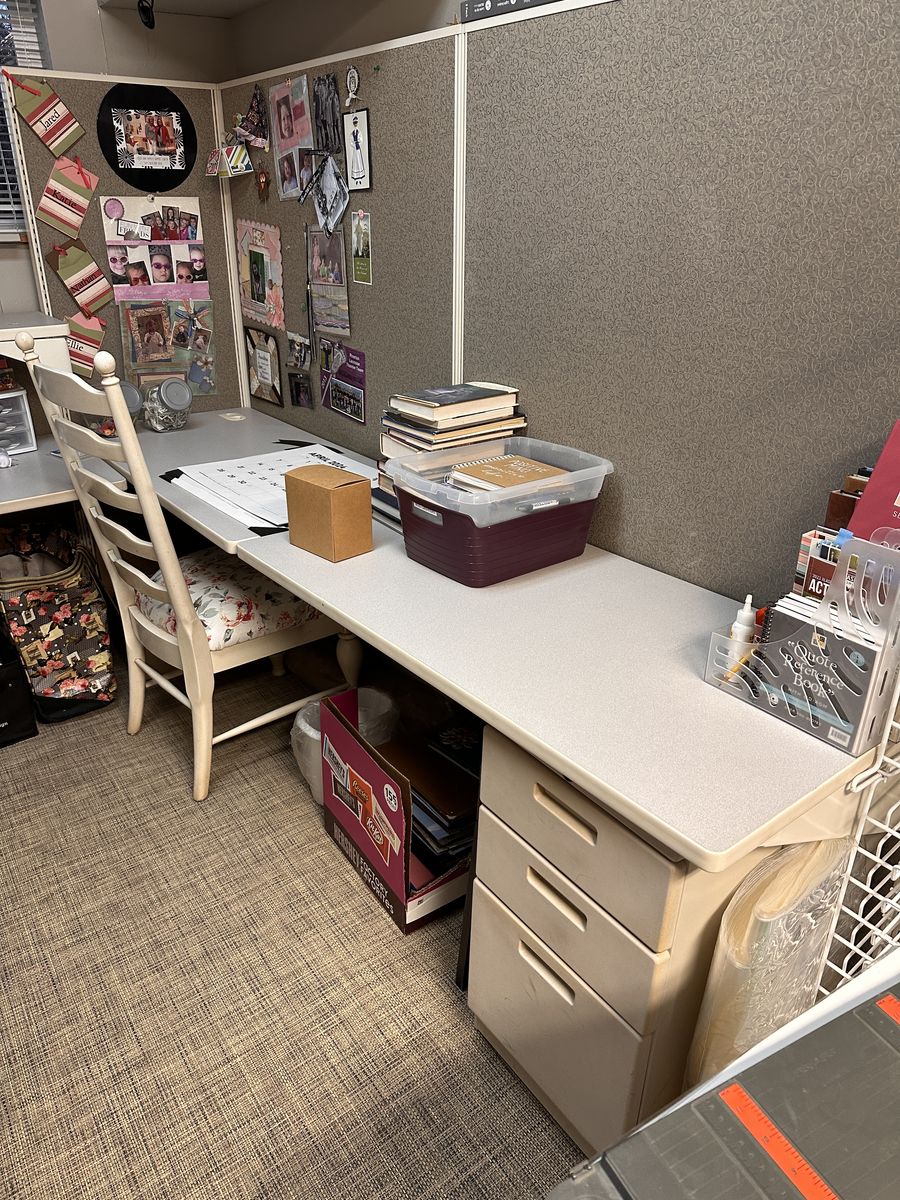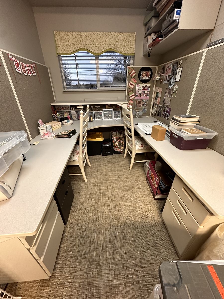 VenmoSelling a custom-built desk workspace with surrounding cork/pin boards for $600. This spacious U-shaped design offers plenty of surface area and built-in storage, making it perfect for a home office, homeschooling, or crafting. The wraparound cork boards are ideal for organizing notes, inspiration, and projects, keeping everything within easy reach.