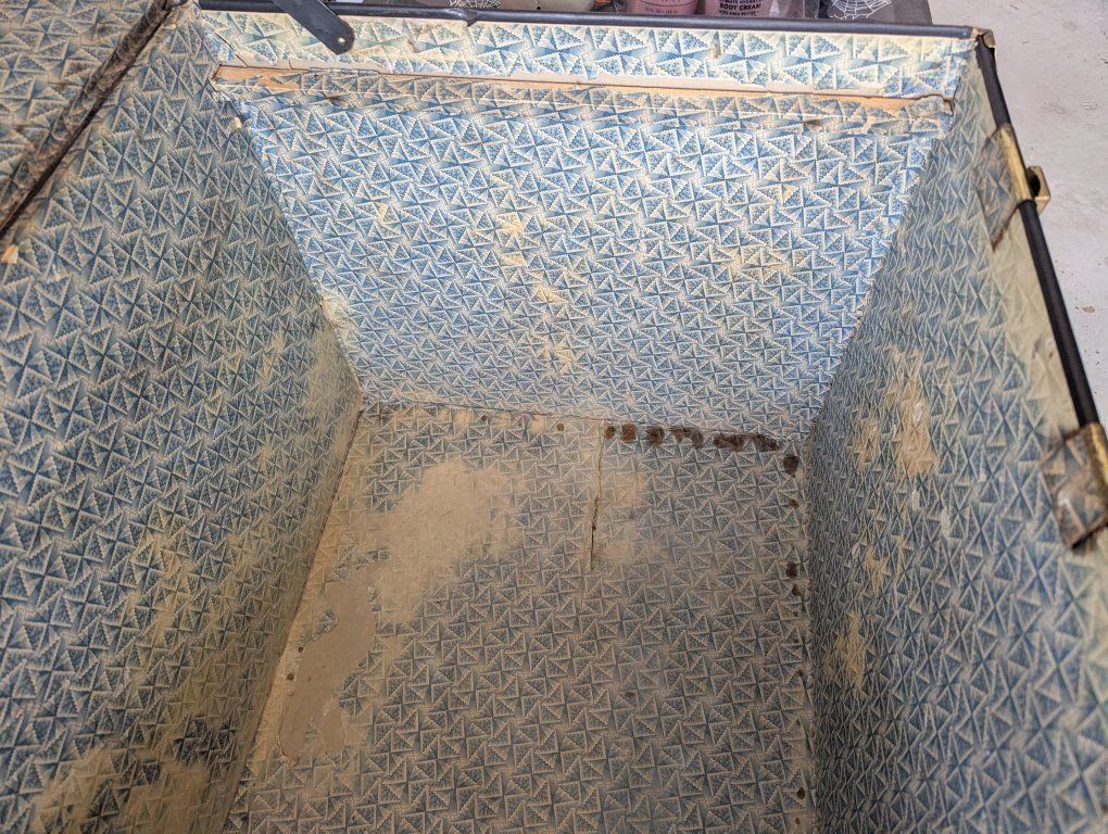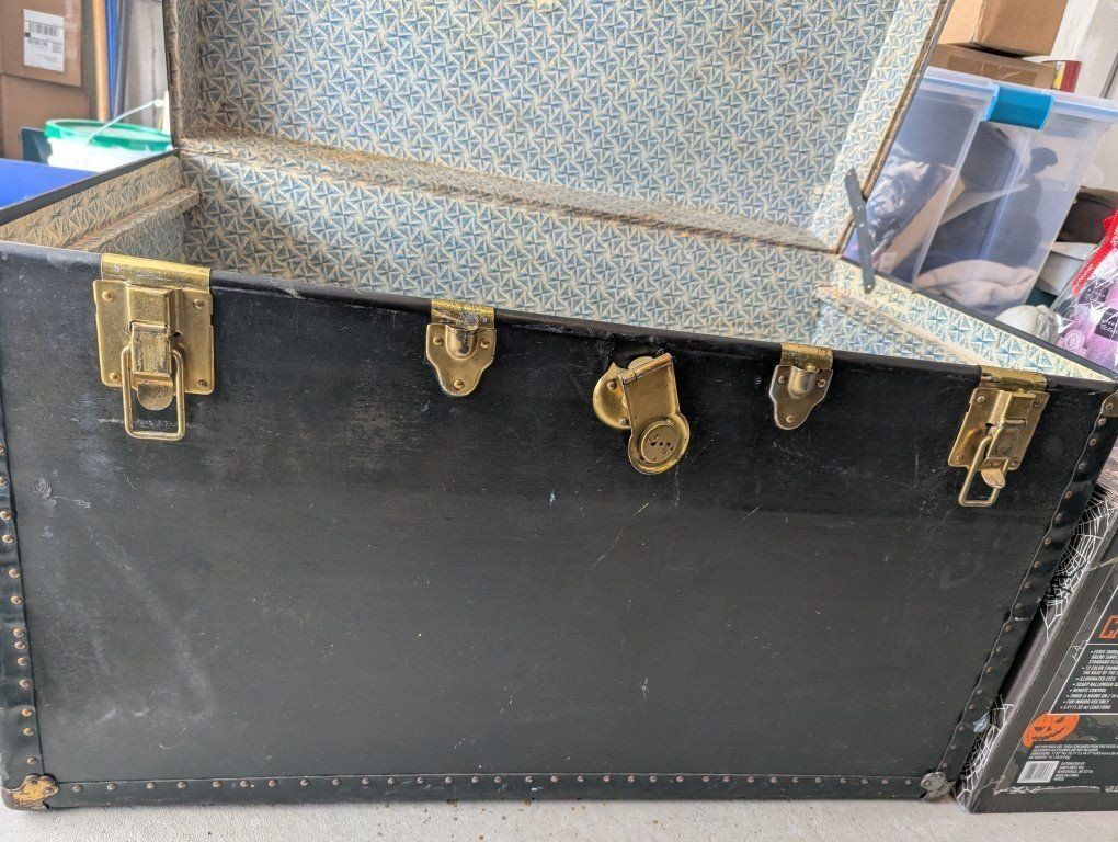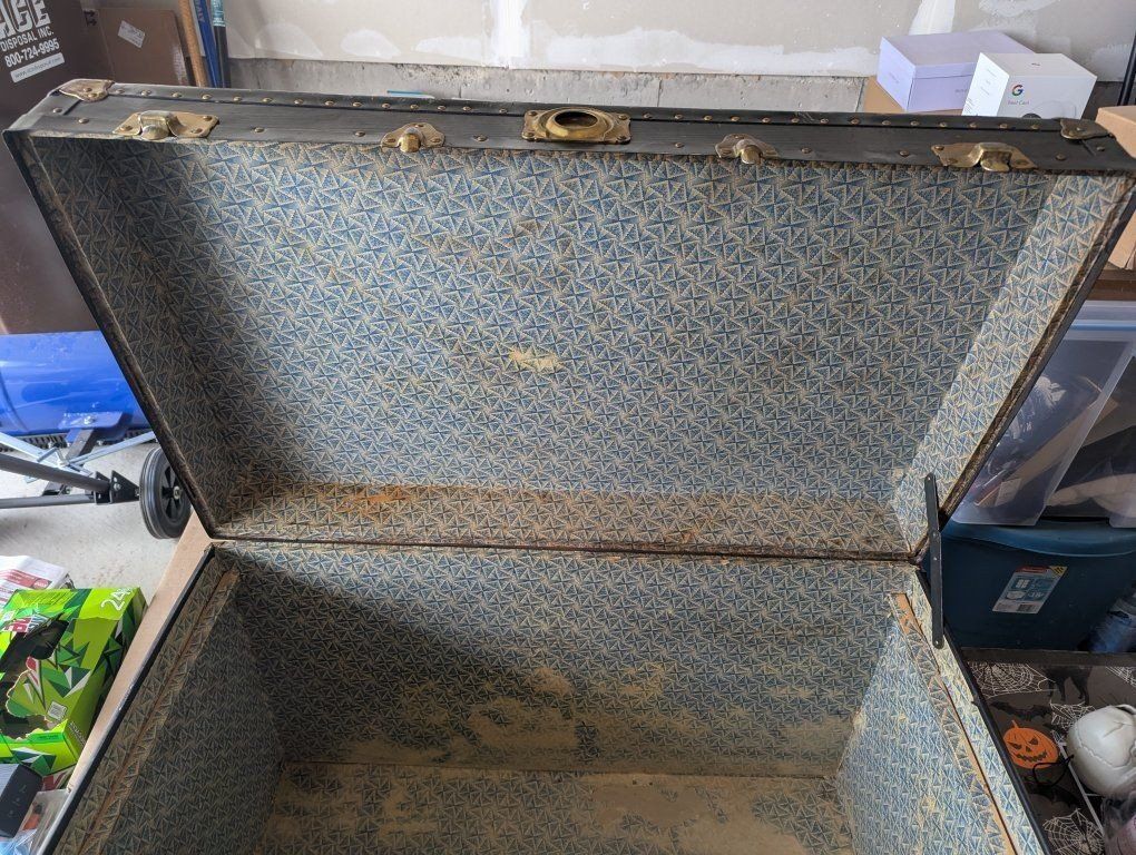 100++ year-old antique wooden steamer trunk brought over to America by my Swedish grandparents. Metal corners, metal studs and bent lock. I haven't tried to bend the lock back into place. It has an intact leather handle on one side. The other one is worn and broken off. Attached to the broken tag is the baggage receipt when my father came out to Utah from New York in 194_. The paper lining inside is worn. There is no shelf. Dimensions: 19.5 inches high, 36 inches long, 21 inches wide I haven't attempted to alter or repair anything. I have left it in it's original state. I am asking $500. Willing to negotiate price. Selling price varies but because of the age, they go for higher prices than what I'm asking. Cash only please.