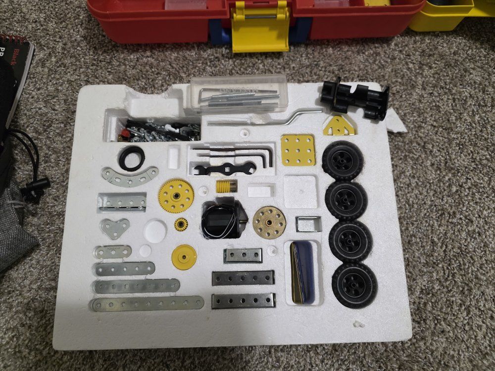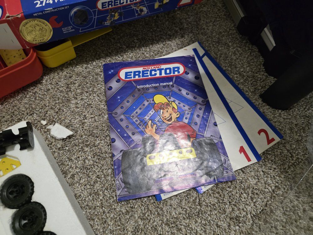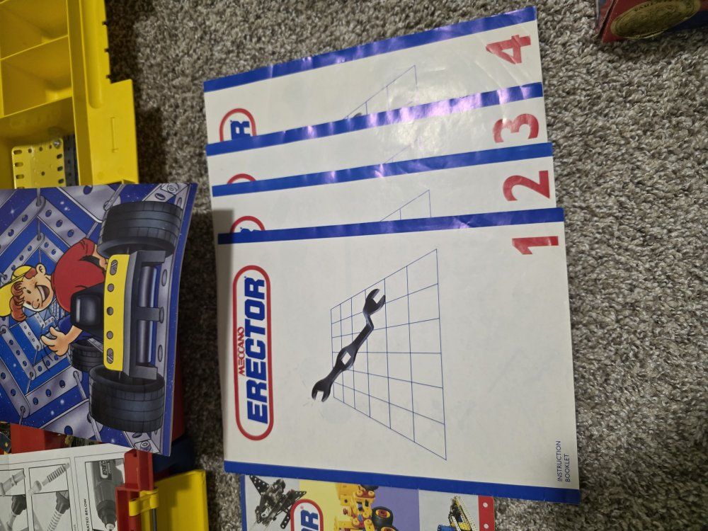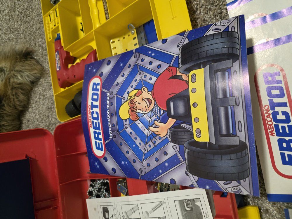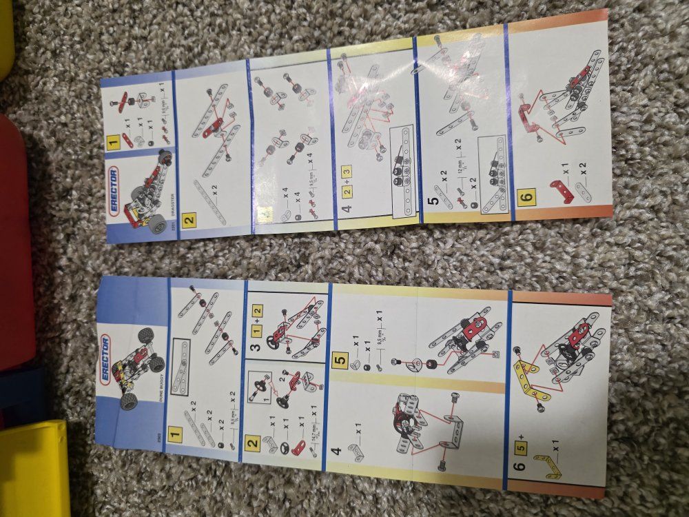 ZelleTwo Erector sets, they are not complete kits, but do have the majority of parts. They both have complete and great condition instruction manuals. the larger kit does have the power tool, only the long bit is missing. There are also several extra hand tools included. Asking $50 for the lot, O.B.O.