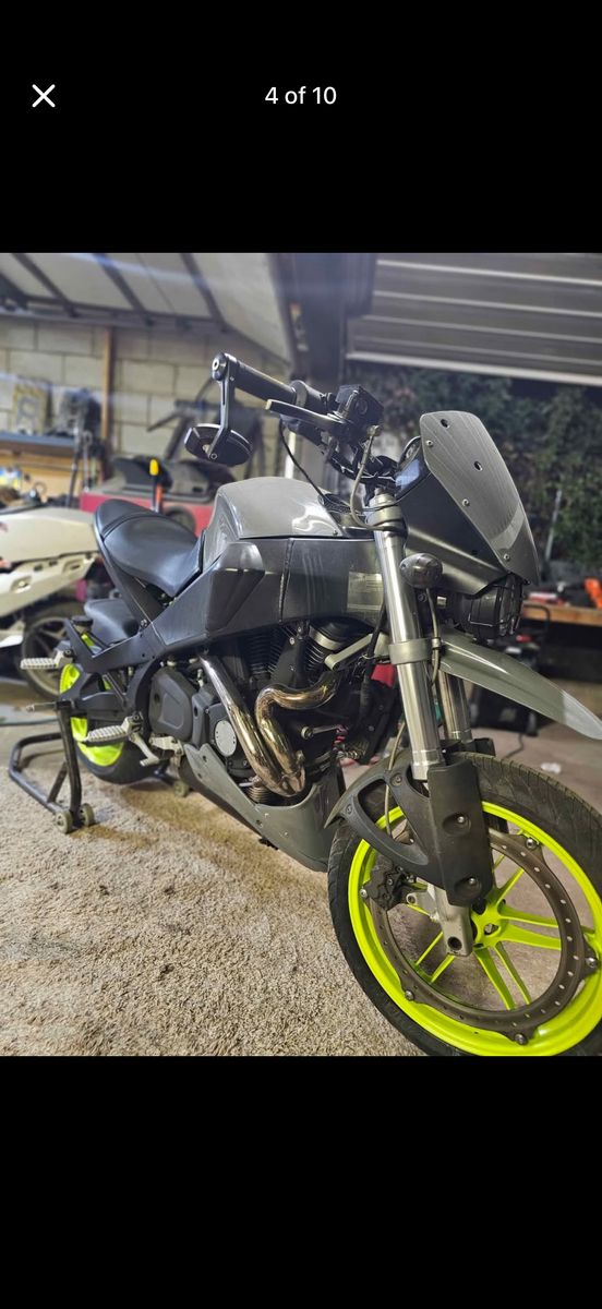 PayPalNeed to down size and sell my beautiful buell. It started as a uslysses which is the big ugly dual sport looking one. It retained the tall long travel suspension but other wise has been converted into a lightning. Very fast and very fun. It’ll pull the front wheel up. It’s a tall bike. Harley sportster 1200 fuel injected motor. Custom paint, the green is all powder coat. It’s around 30k miles. Clean title. Test rides with cash in hand. May consider trading for an enclosed utility trailer. Or if you’re selling a 6.7 Powerstroke I’m in the market for one and would of course put cash on my end. Text me 512-508-0229